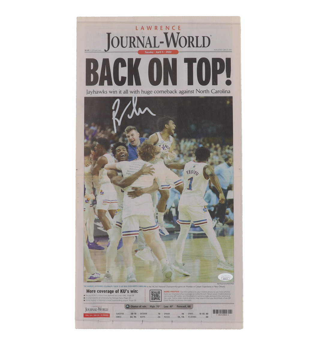 Lawrence Journal-World Newspaper issue dated Tuesday, April 5, 2022 has been hand-signed on the front by Bill Self (HOF).
