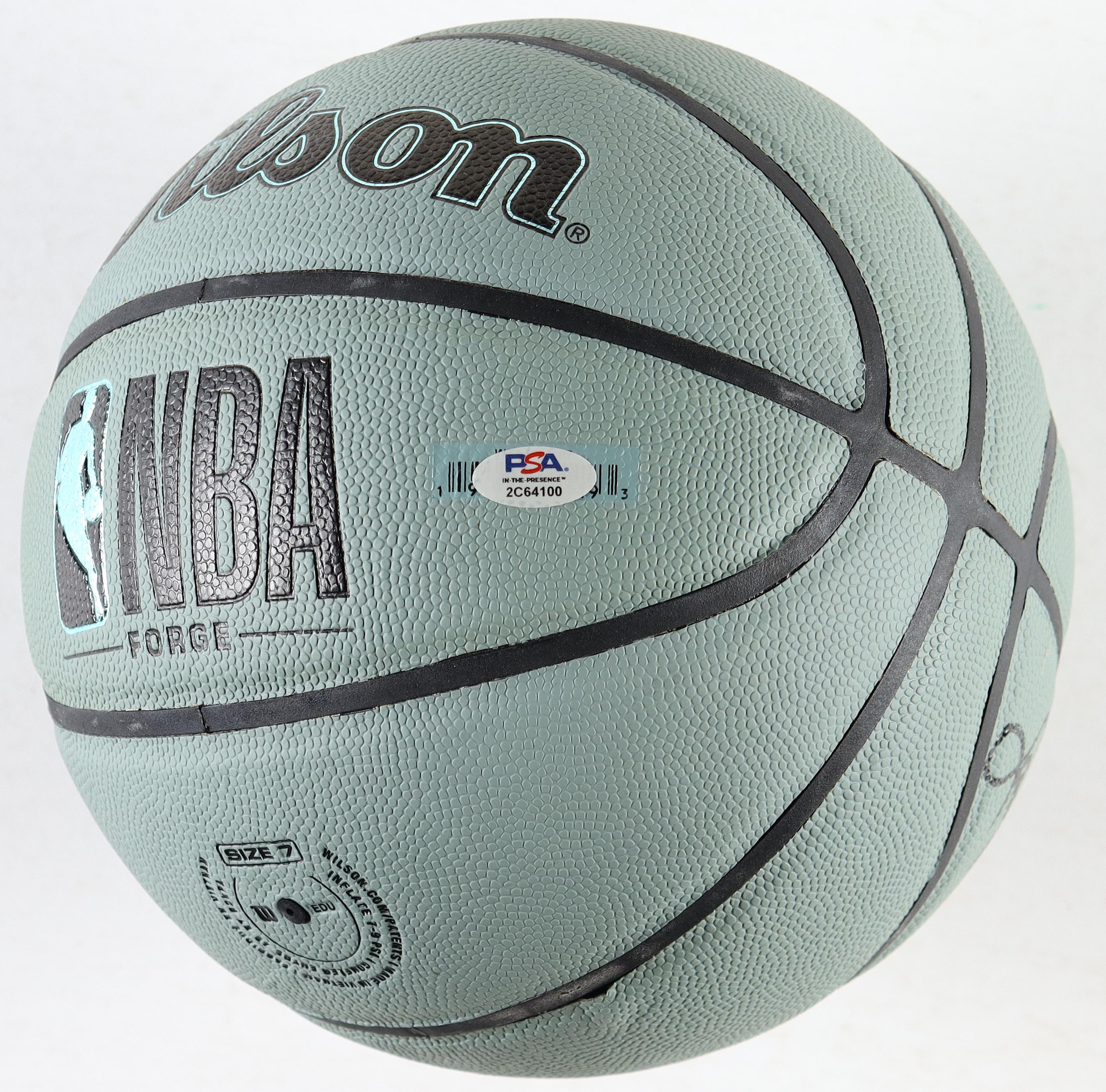 Larry Bird Signed NBA Basketball With Display Case & Name Plate (PSA)