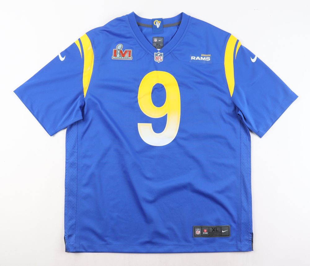 Nike jersey with everything printed on, size XL. Hand-signed by Matthew Stafford (Los Angeles Rams).