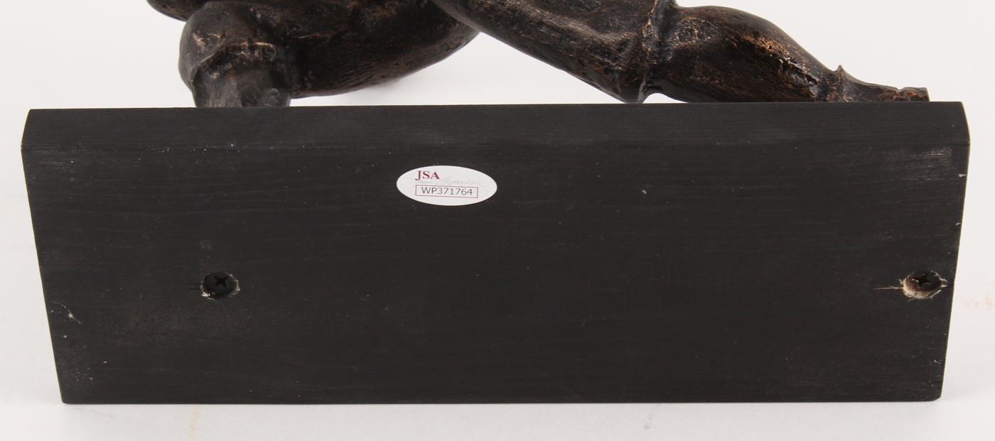 Statue measures 10" in size with a base that measures 3.5" x 9". Hand-signed in silver paint pen by Jim Plunkett (Patriots, Raiders HOF).