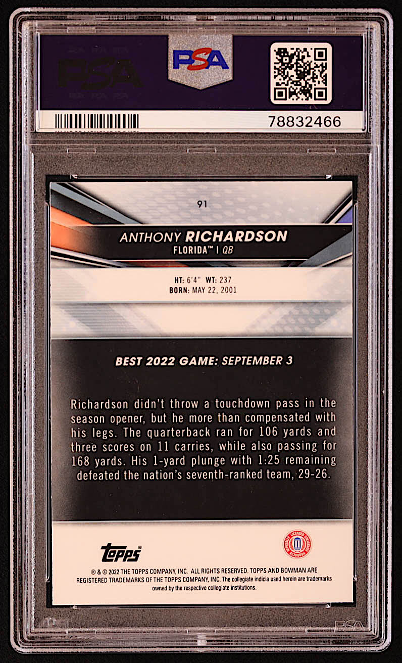 Anthony Richardson 2022 Bowman's Best University #91 RC (PSA 10)