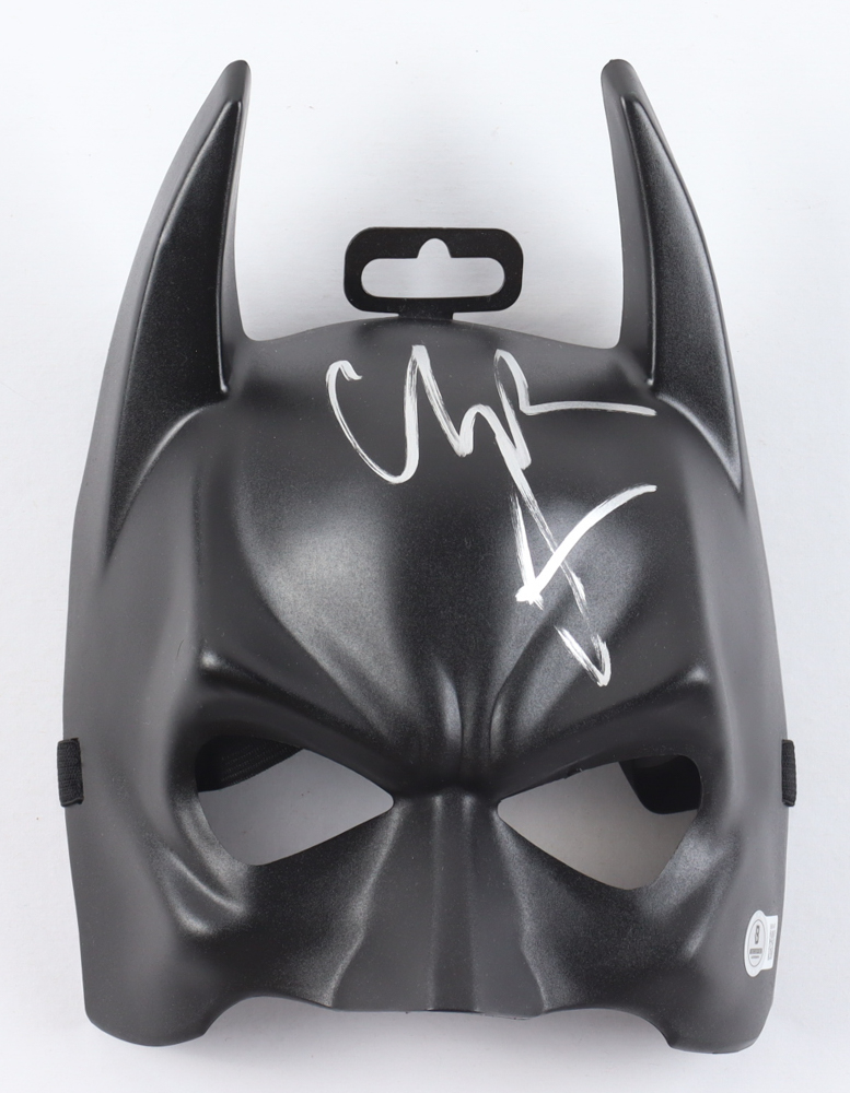 Plastic Batman mask has been hand-signed by Christian Bale.