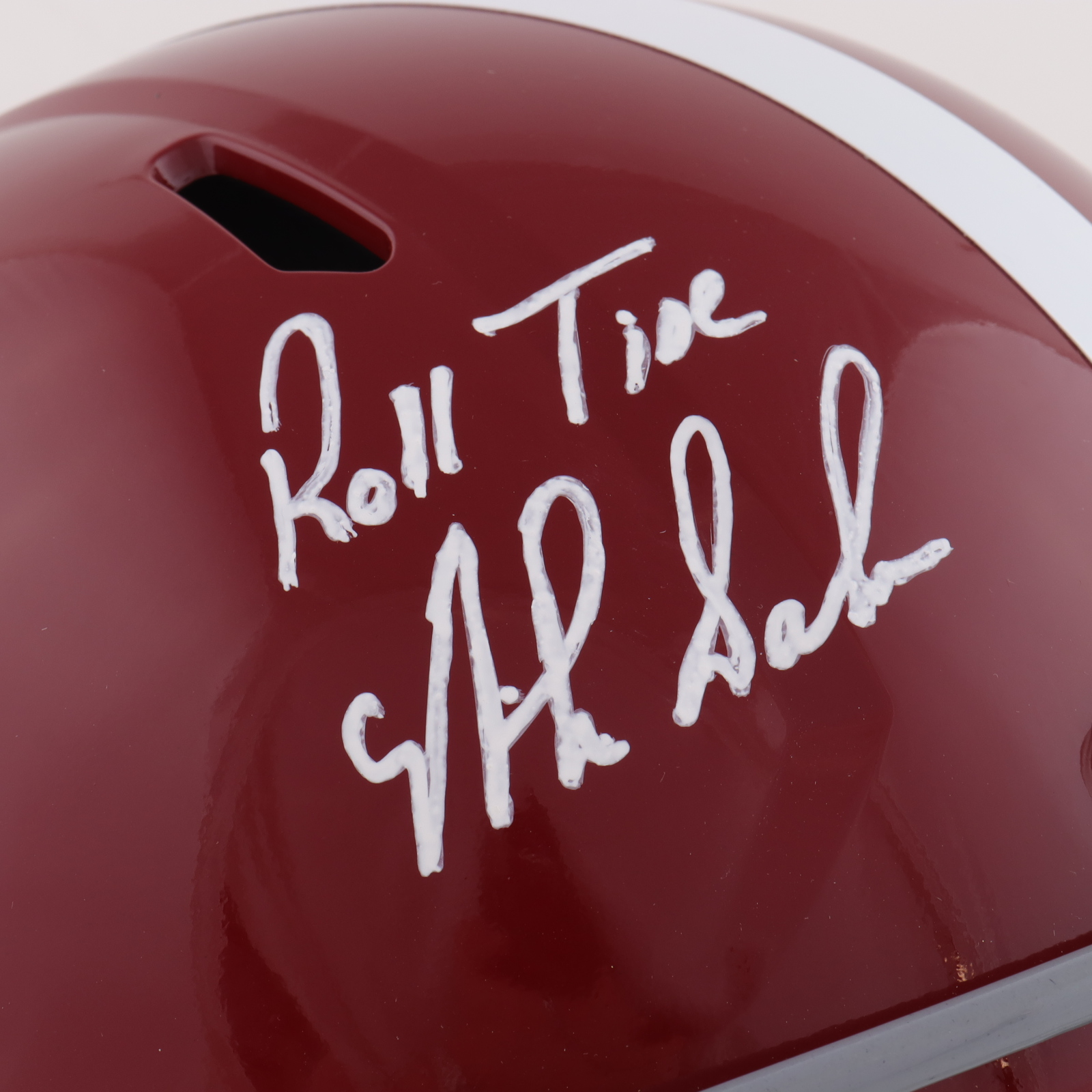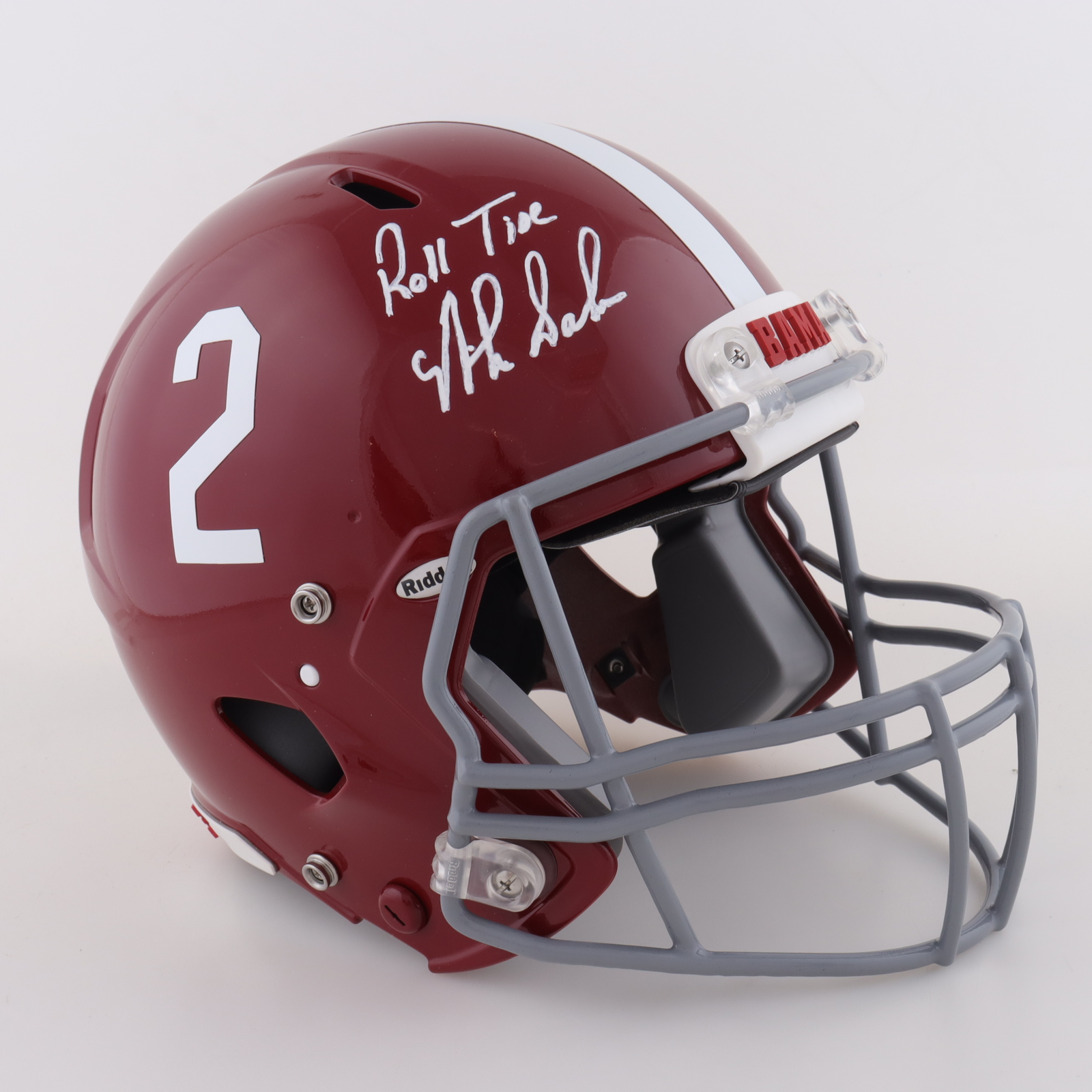 Riddell Alabama Crimson Tide Full Size Youth Authentic On-Field Speed Helmet. Hand-signed and inscribed by Nick Saban.
