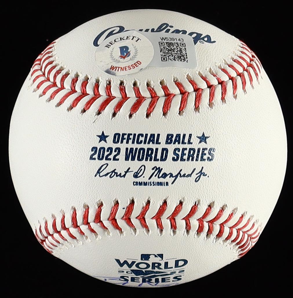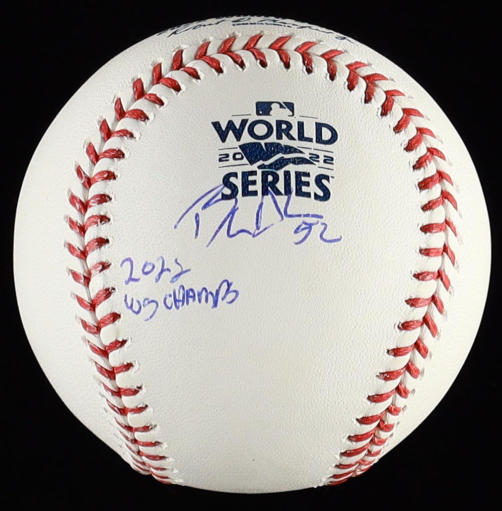 Rawlings 2022 World Series Logo Official Major League baseball. Hand-signed and inscribed by Bryan Abreu (Houston Astros).