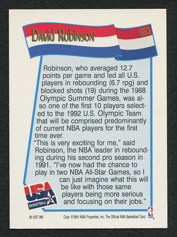 David Robinson Signed 1991-92 Hoops #583 USA Basketball Card (JSA ALOA)