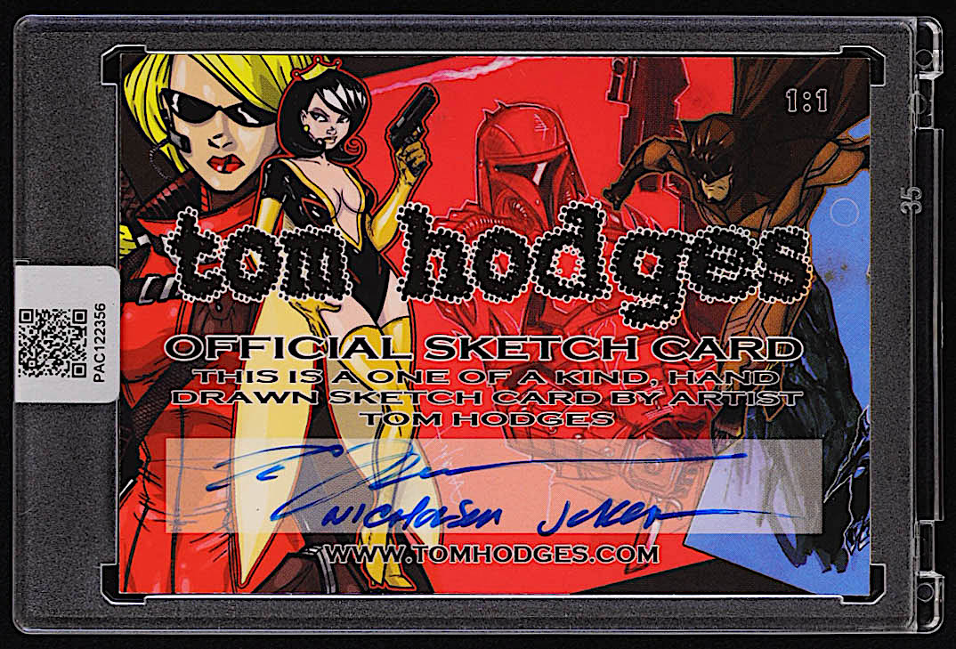 This original sketch card includes original art by renowned comic book artist, Tom Hodges. Also includes a character name inscription on the back by the artist.