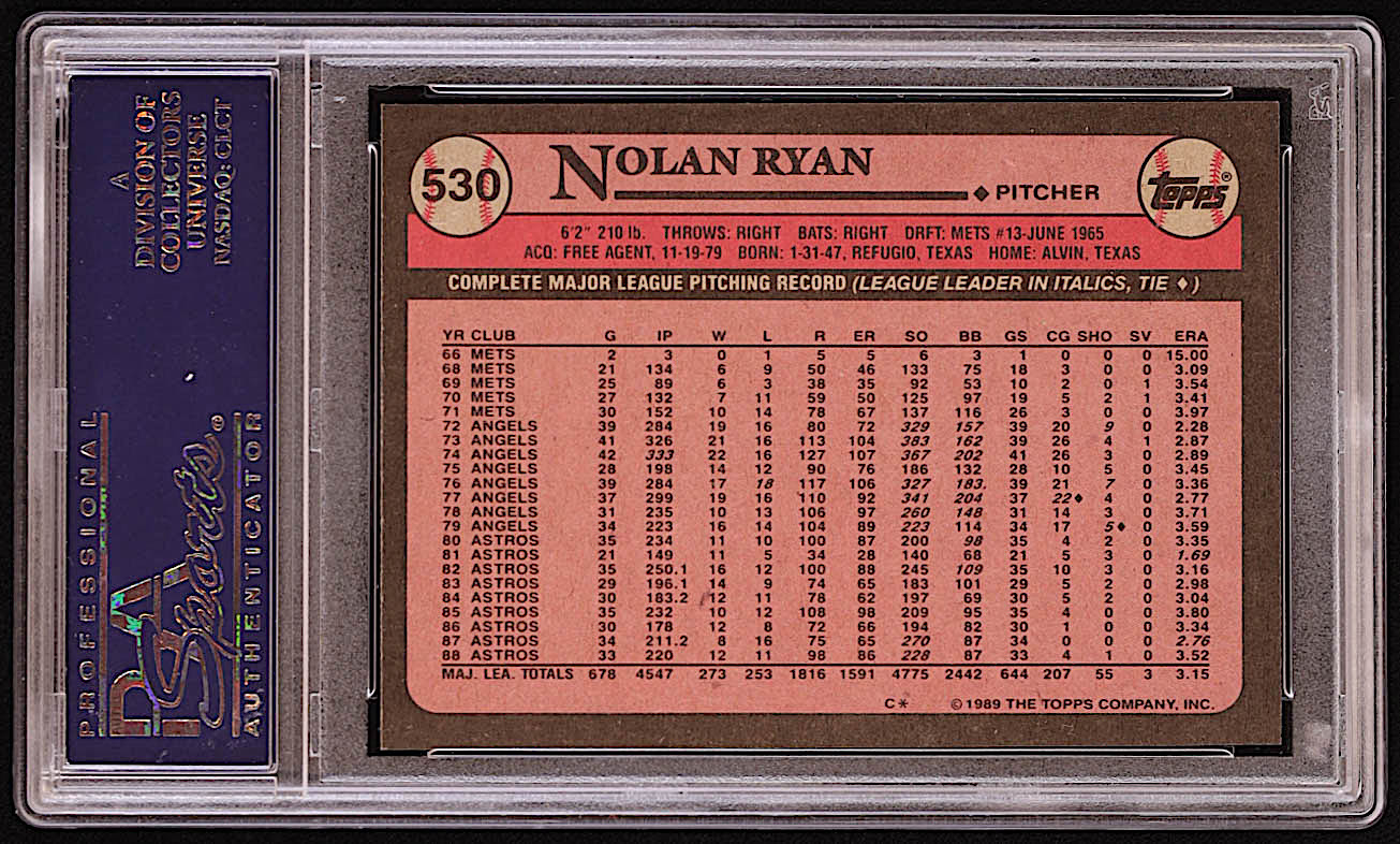 Nolan Ryan 1989 Topps #530 (PSA 10)