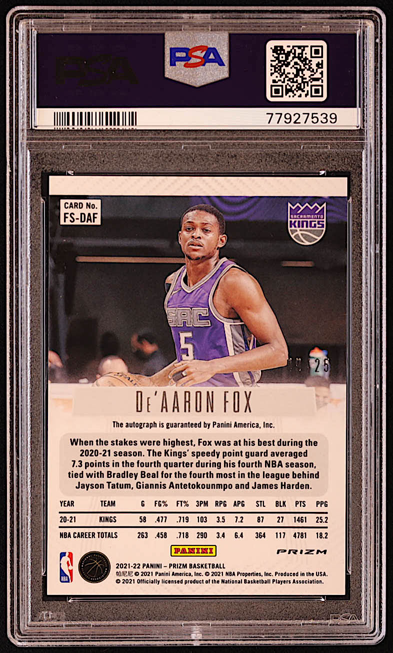 De'Aaron Fox 2021-22 Panini Prizm Flashback Signatures Prizms Mojo #14 #9/25 (PSA 10)