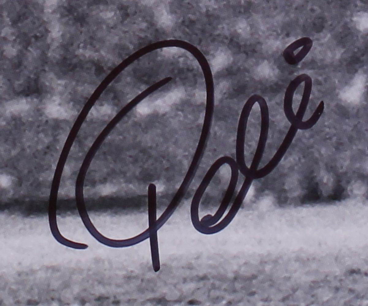 Poster Print measures 16" x 20" in size and is hand-signed in black felt-tip pen by Pele.