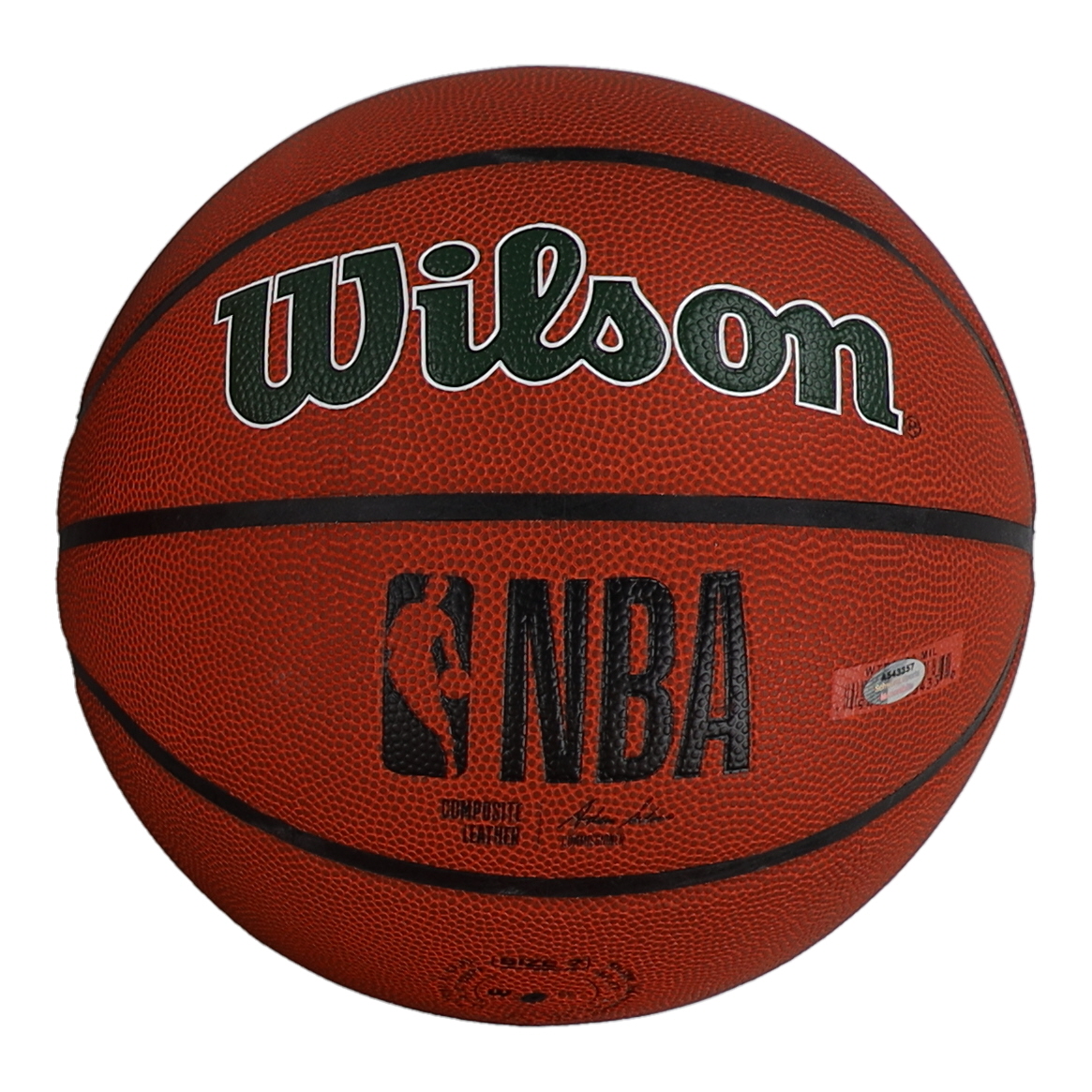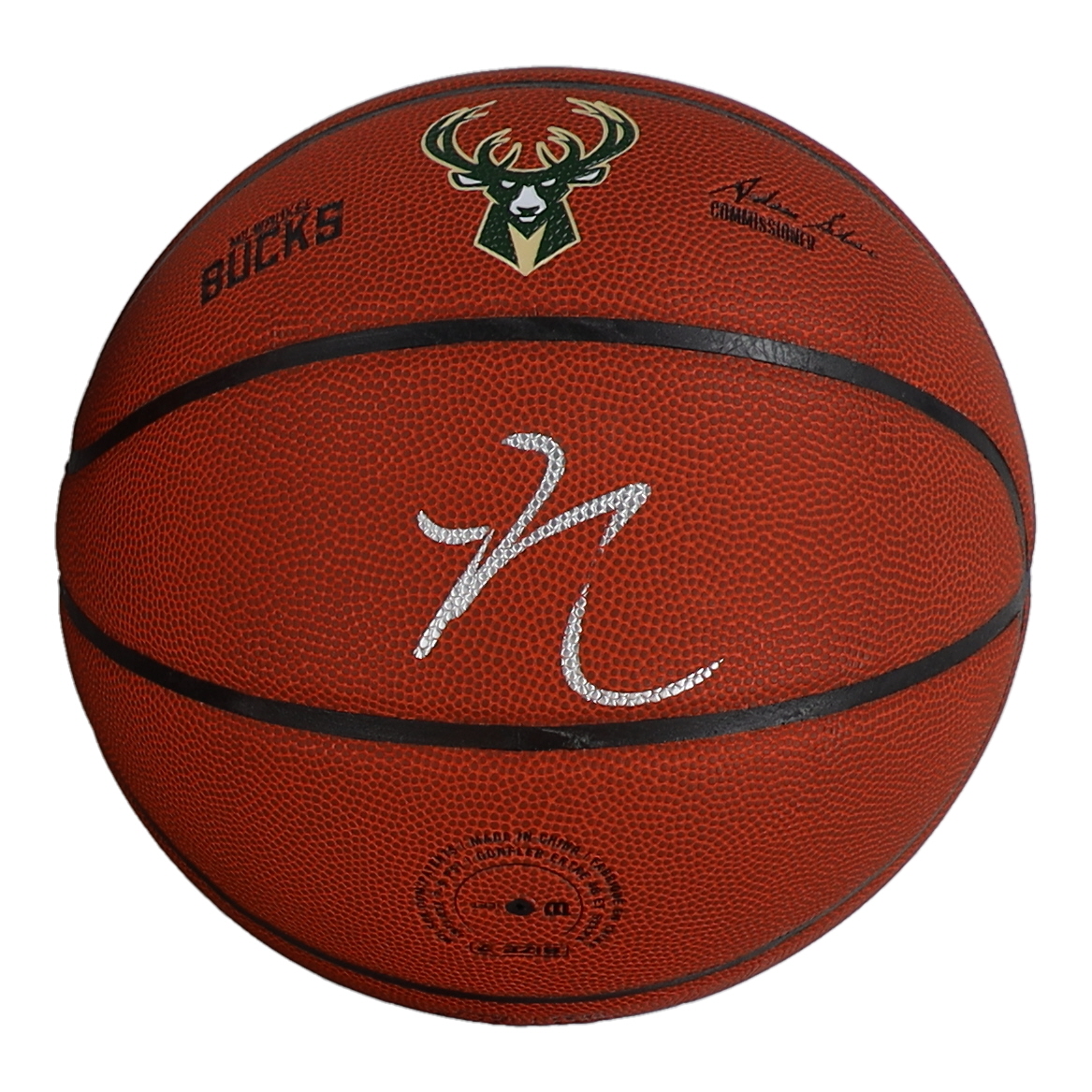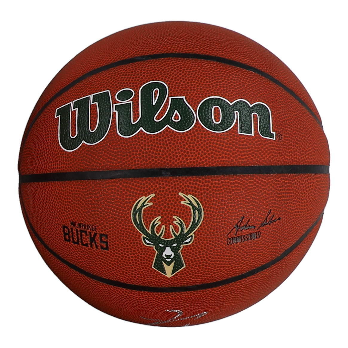 Wilson Milwaukee Bucks Logo Basketball. Hand-signed by Giannis Antetokounmpo.