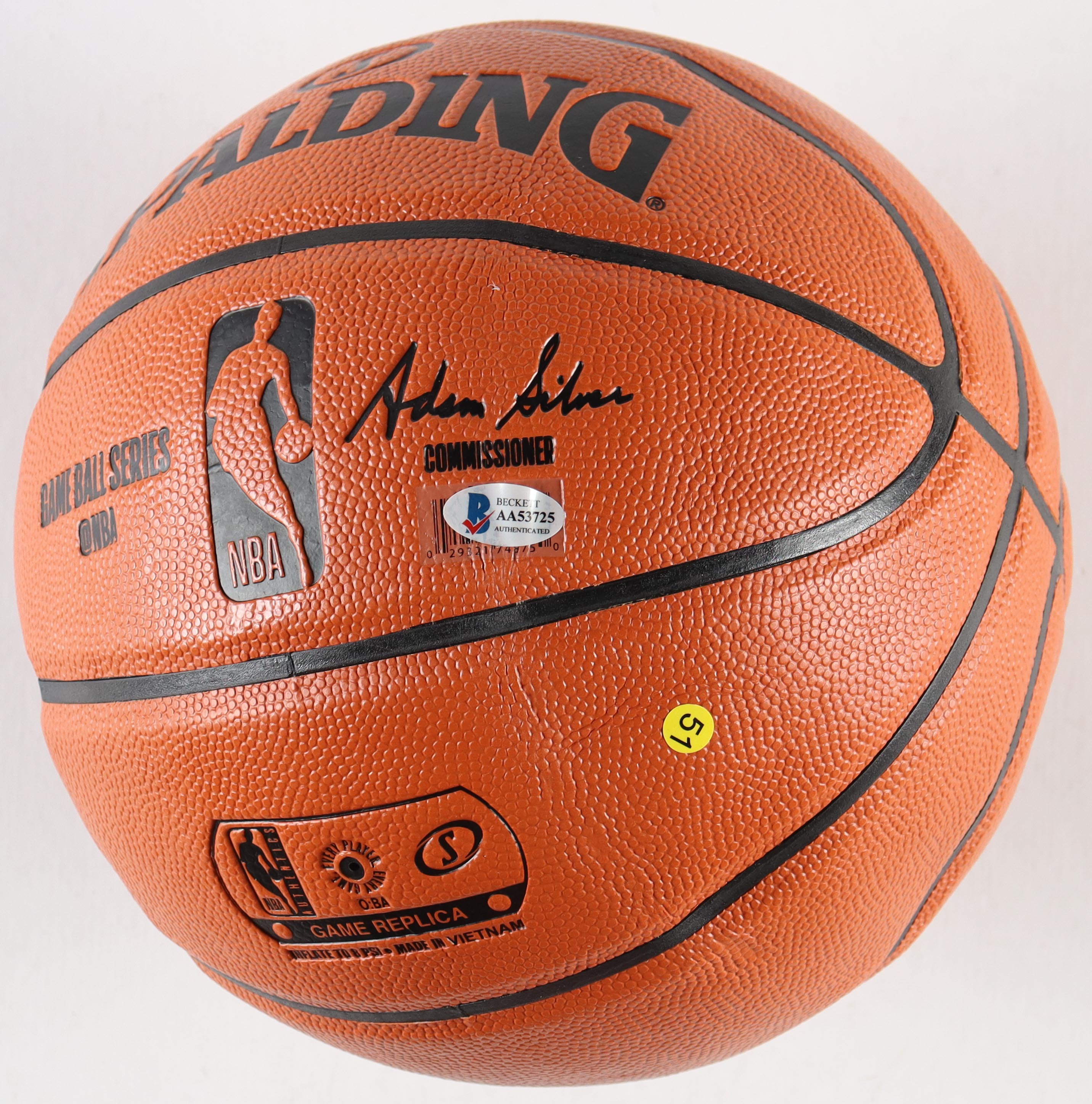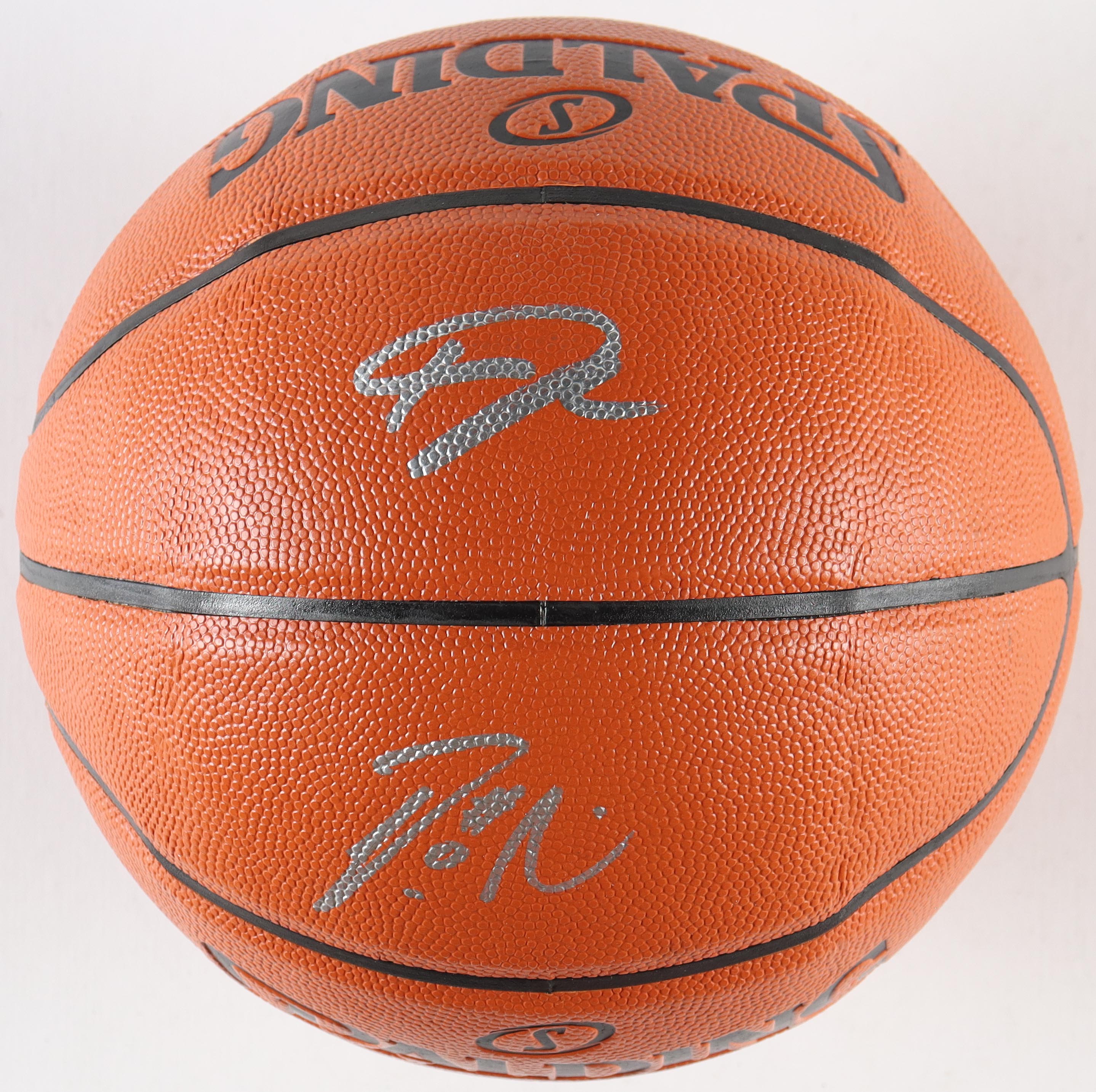 Spalding NBA Game Ball Series Game Basketball. Hand-signed by Giannis Antetokounmpo and Damian Lillard (Milwaukee Bucks).