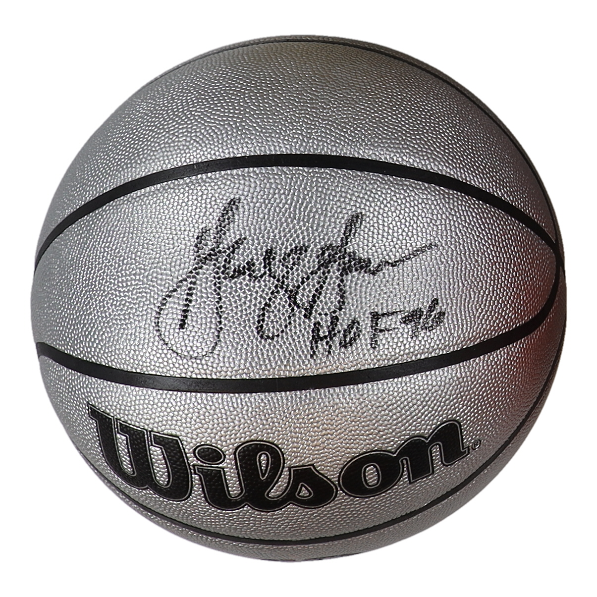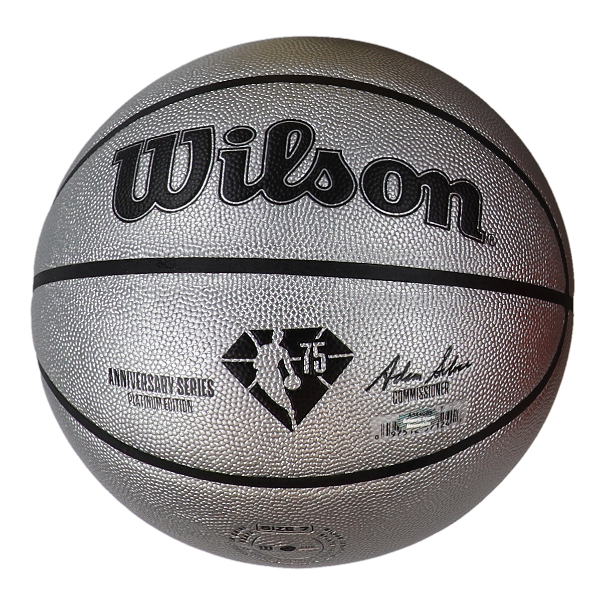 Wilson silver indoor/outdoor 75th Anniversary logo NBA basketball. Hand-signed by George Gervin (San Antonio Spurs, HOF).
