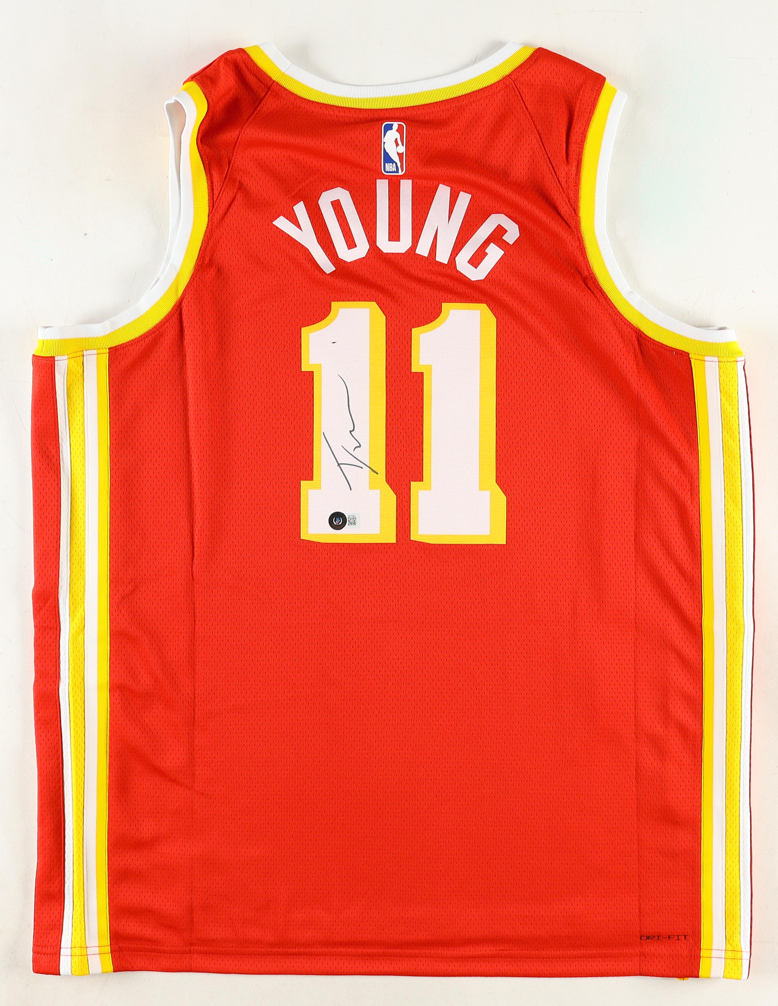 Nike jersey. Everything is printed on, size XL. Hand-signed by Trae Young (Atlanta Hawks).