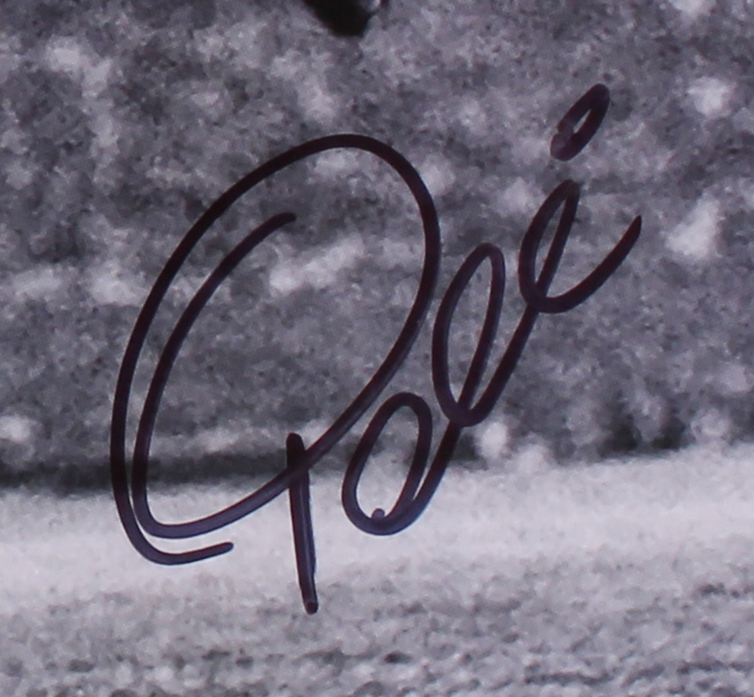 Poster Print measures 16" x 20" in size and is hand-signed in black felt-tip pen by Pele.