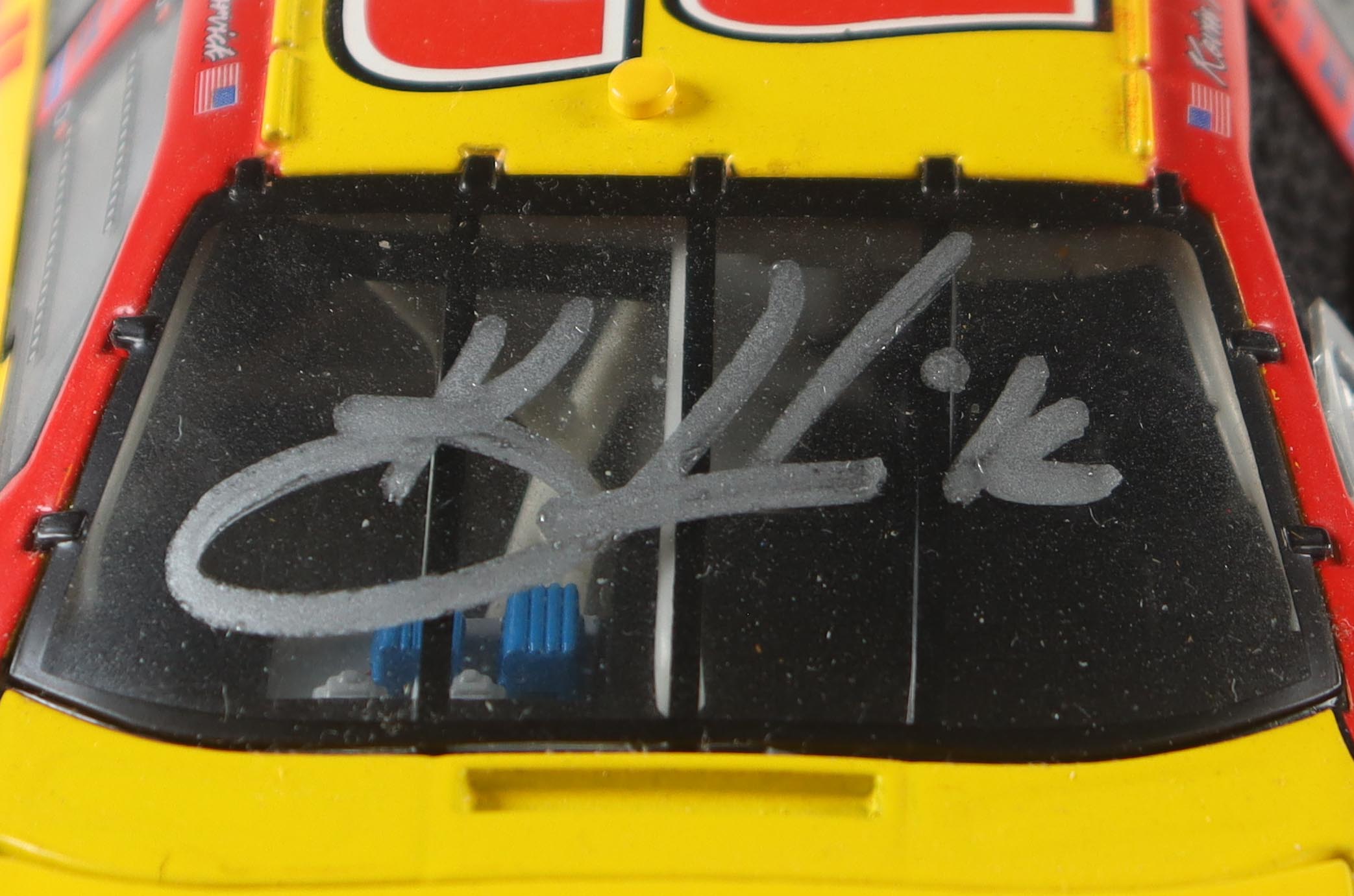 Die-cast car has been hand-signed on the roof by Kevin Harvick.