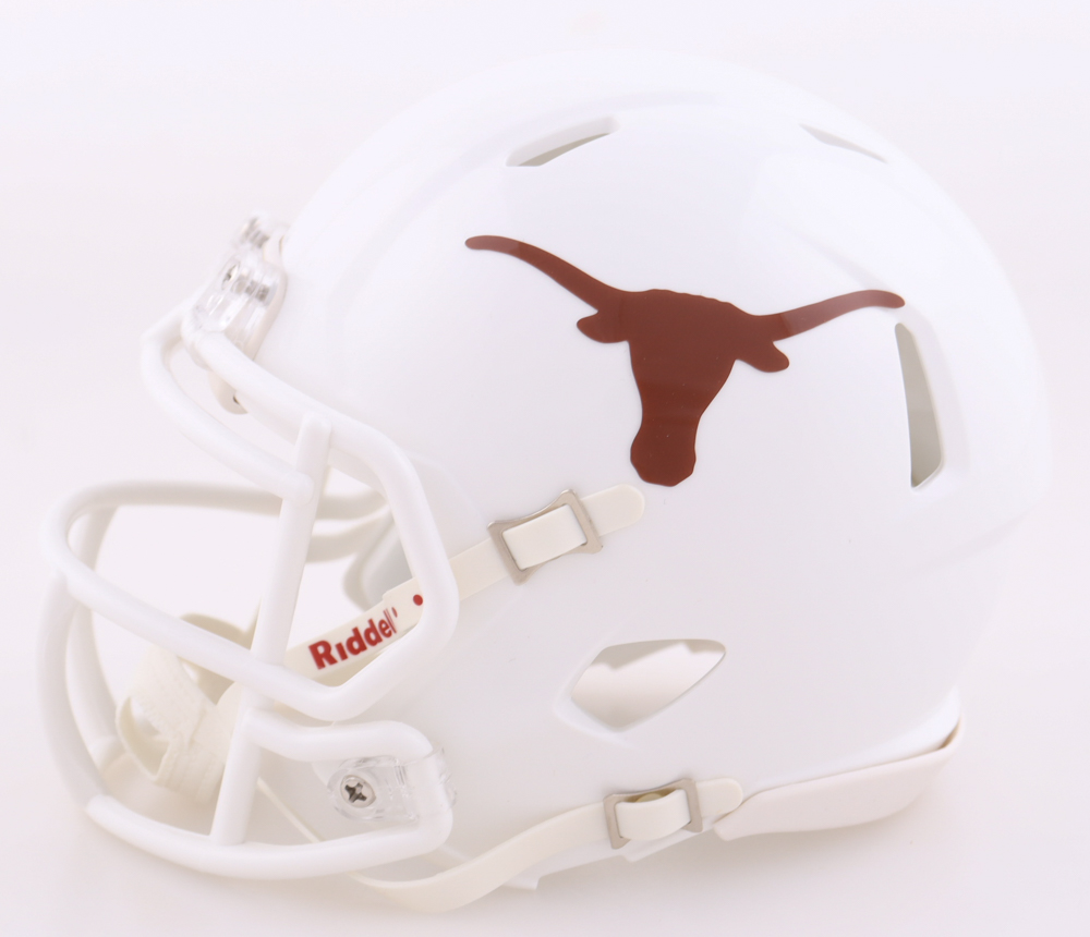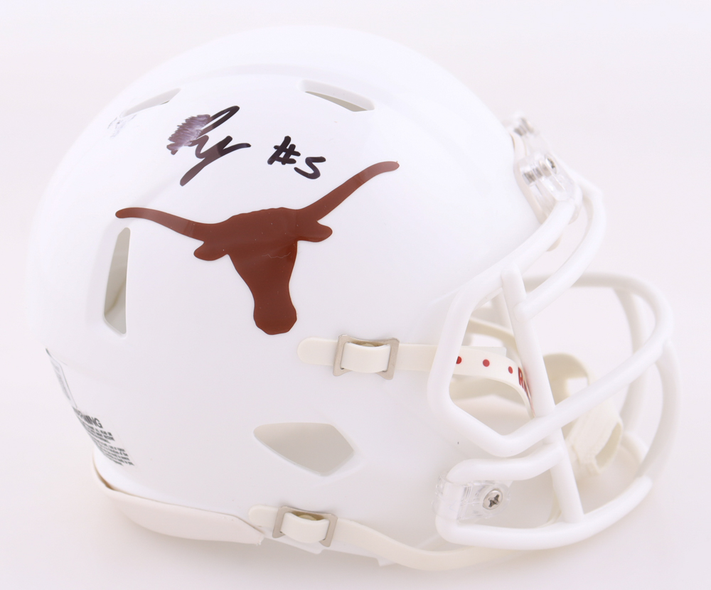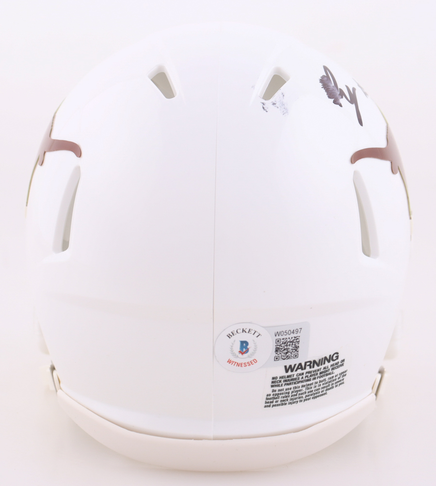 Riddell Texas Longhorns Speed mini helmet. Hand-signed by Bijan Robinson. Please note, the signature has smudged.