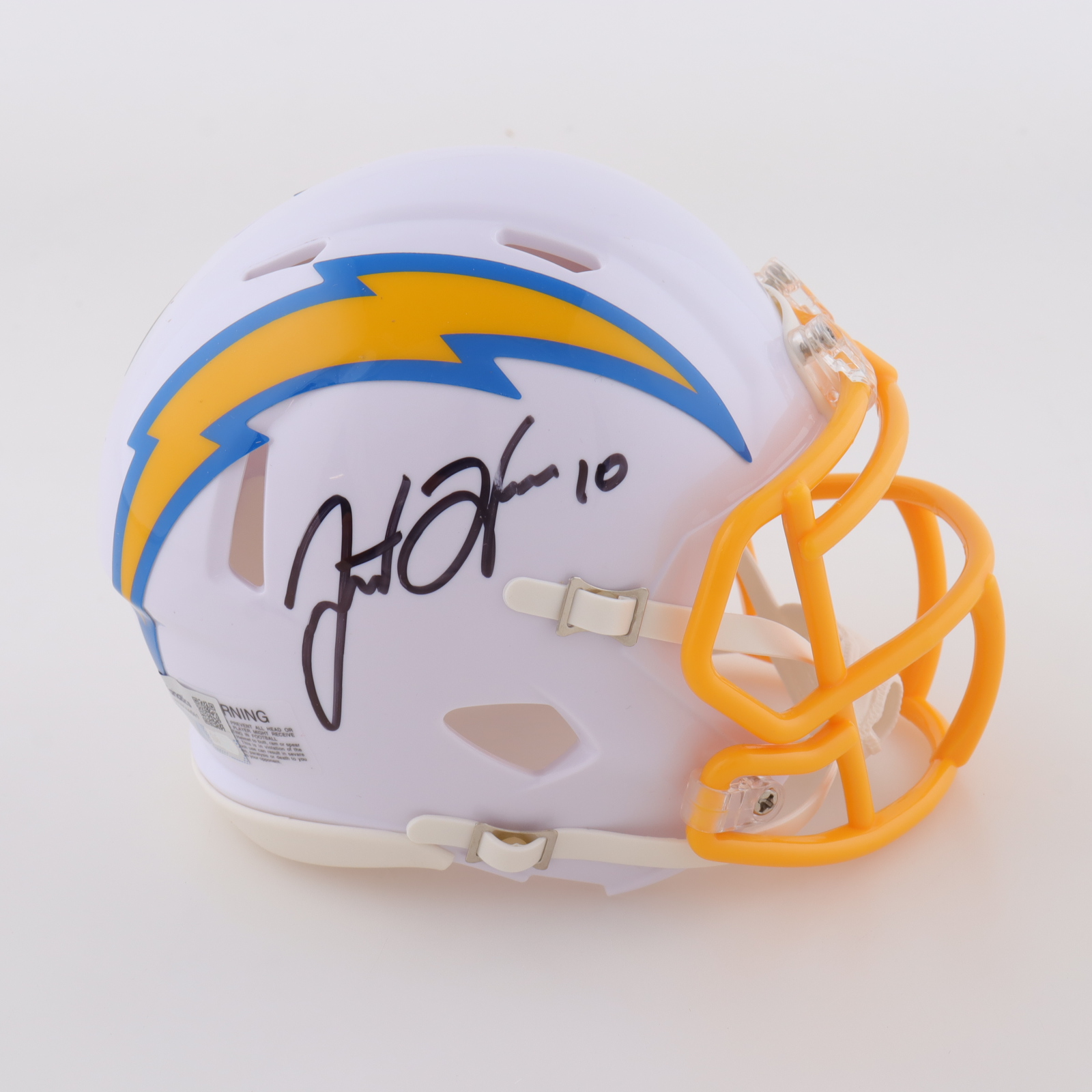 Riddell Los Angeles Chargers Speed mini helmet. Hand-signed by Justin Herbert. Please note, there is smudging on the autograph.