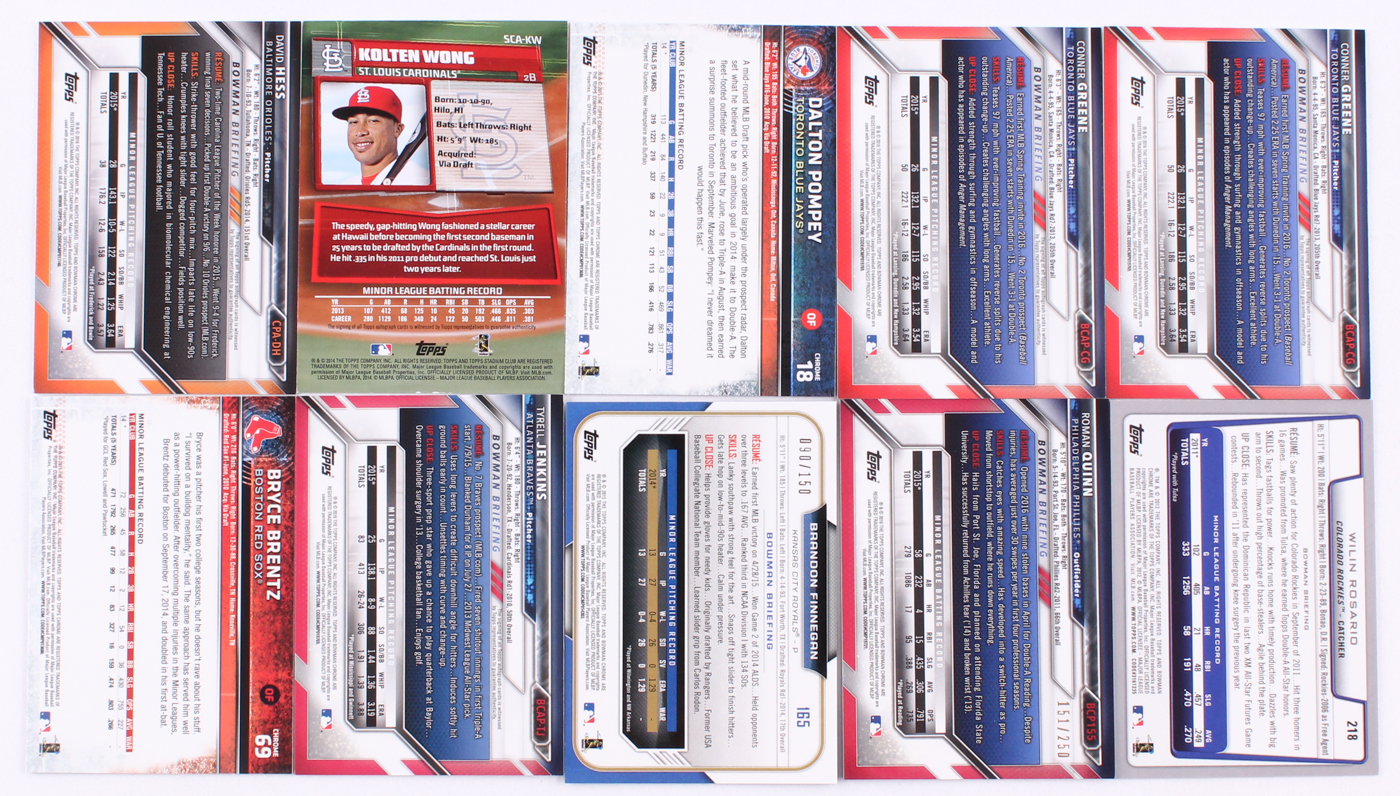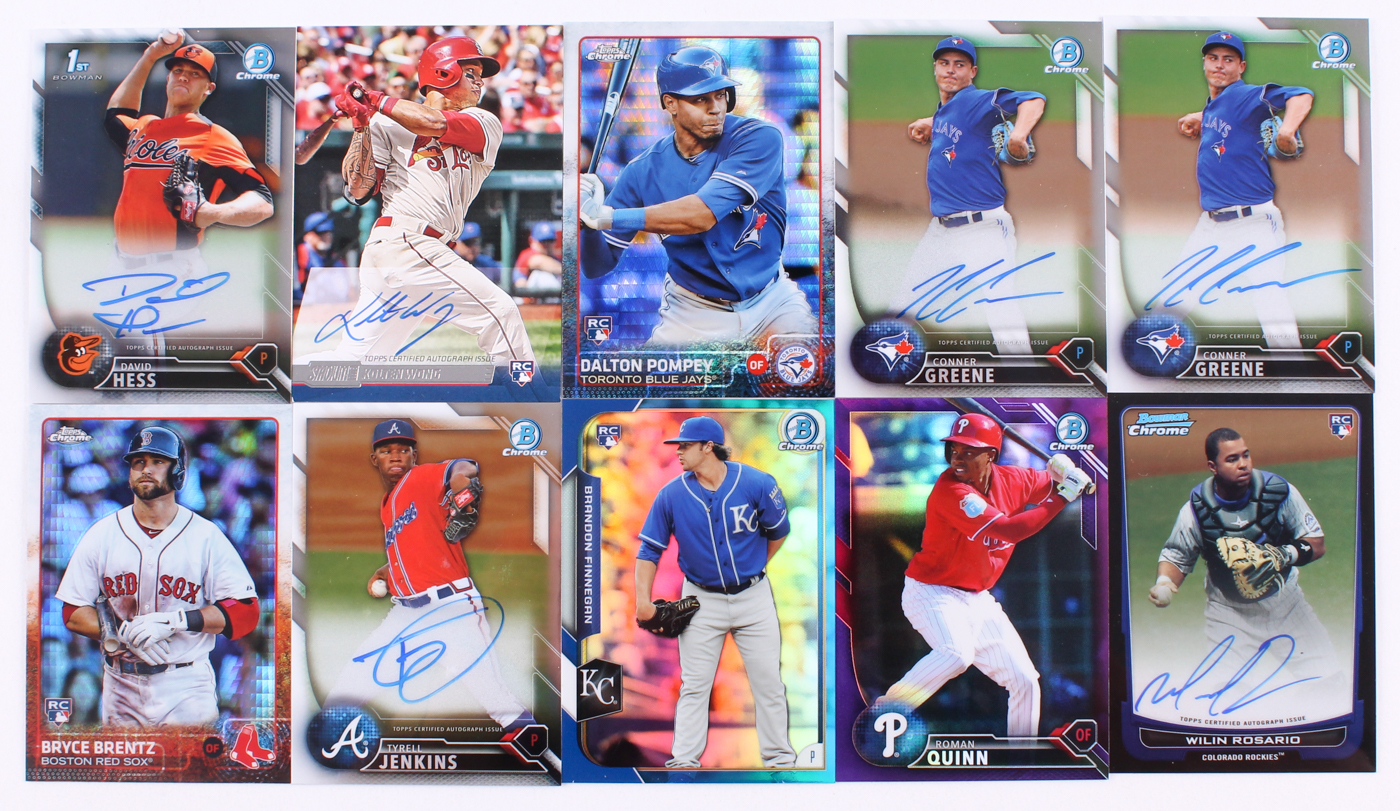 Lot includes all (10) cards shown. Please see photos for details regarding the condition of the cards. The lot inclues (2) 2016 Bowman Chrome Prospect Autographs #BCAPCG Conner Greene baseball cards.