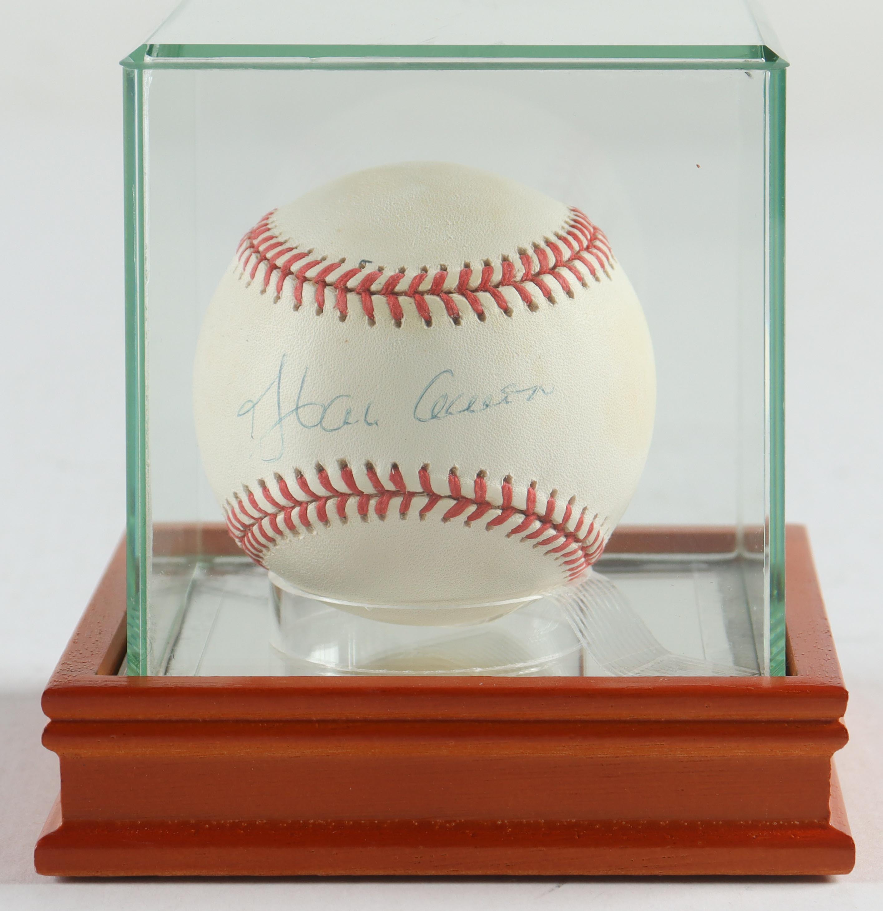 Hank Aaron Signed ONL Baseball in Wood & Glass Display Case (PSA)