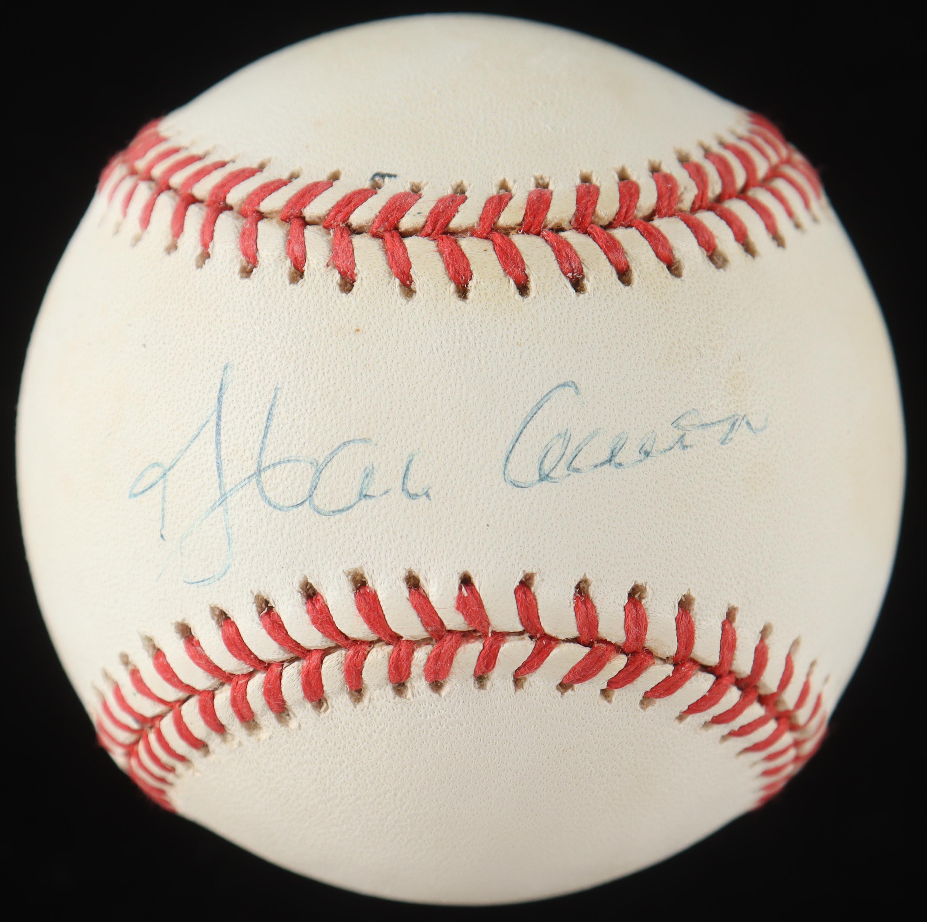 Rawlings Official National League baseball has been hand-signed by Hank Aaron (D. 2021, Milwaukee Braves, HOF). Includes display case as shown.