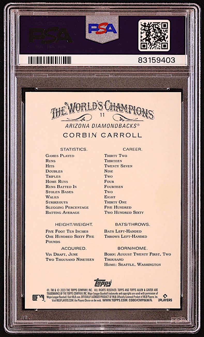 Corbin Carroll 2023 Topps Allen and Ginter #11 RC (PSA 10)