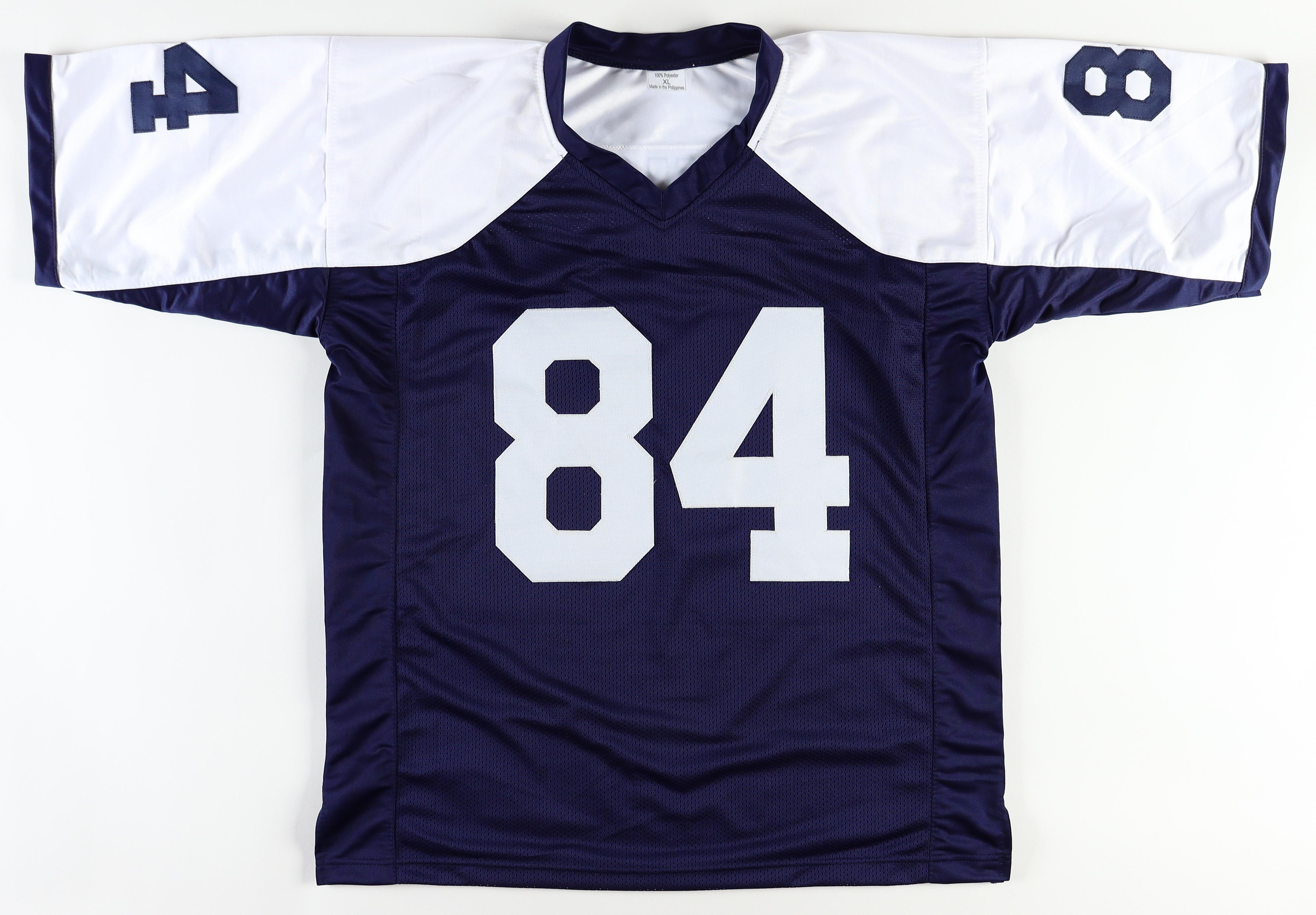 Custom style jersey with everything sewn on, size XL. Hand-signed and inscribed by Jay Novacek.