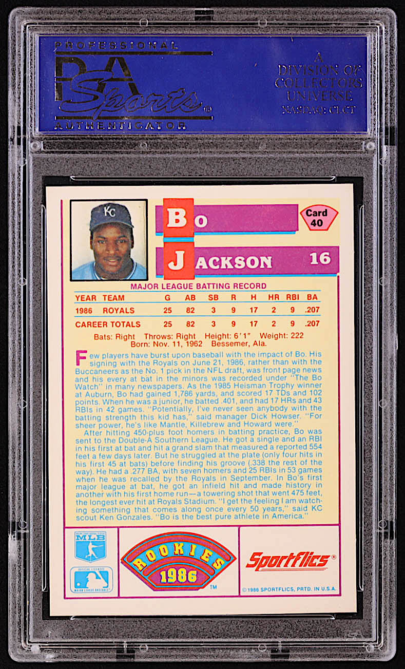 Bo Jackson 1986 Sportflics Rookies #40 RC (PSA 9)