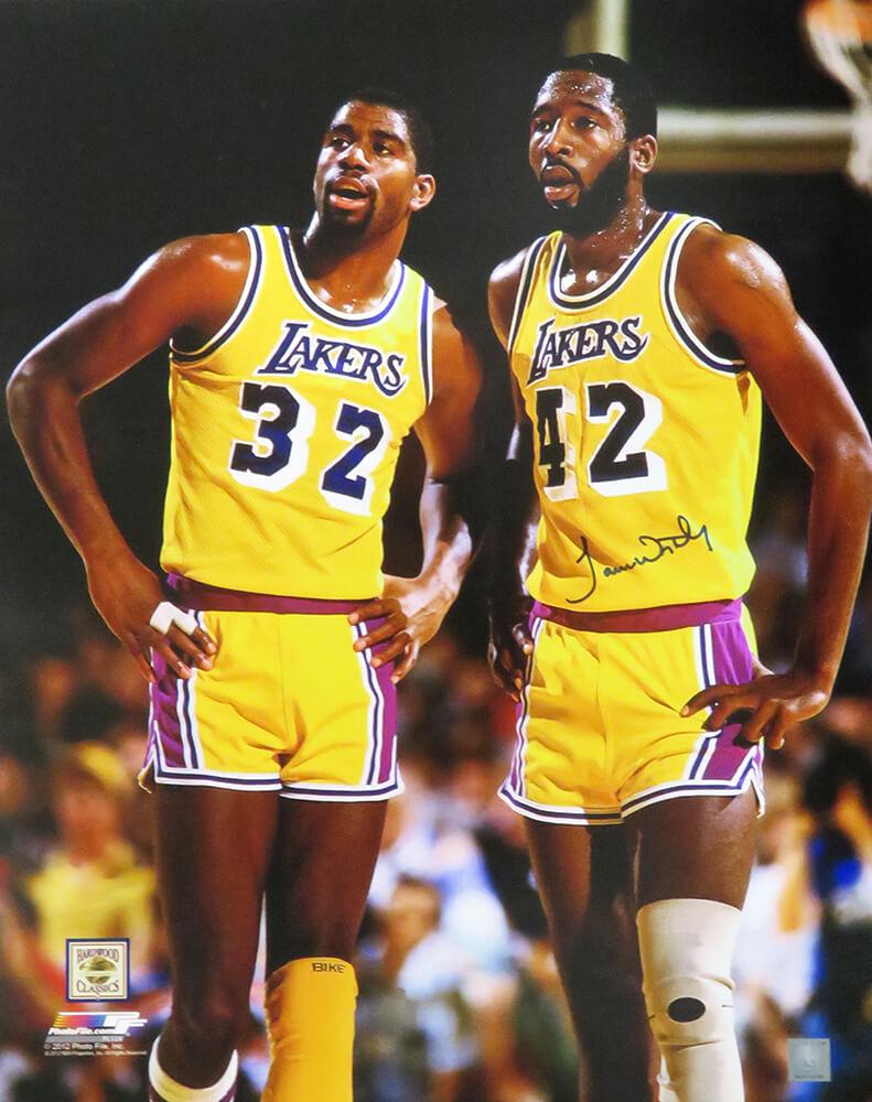 Photo measures approximately 16" x 20" in size. Hand-signed by James Worthy (Los Angeles Lakers, HOF).
