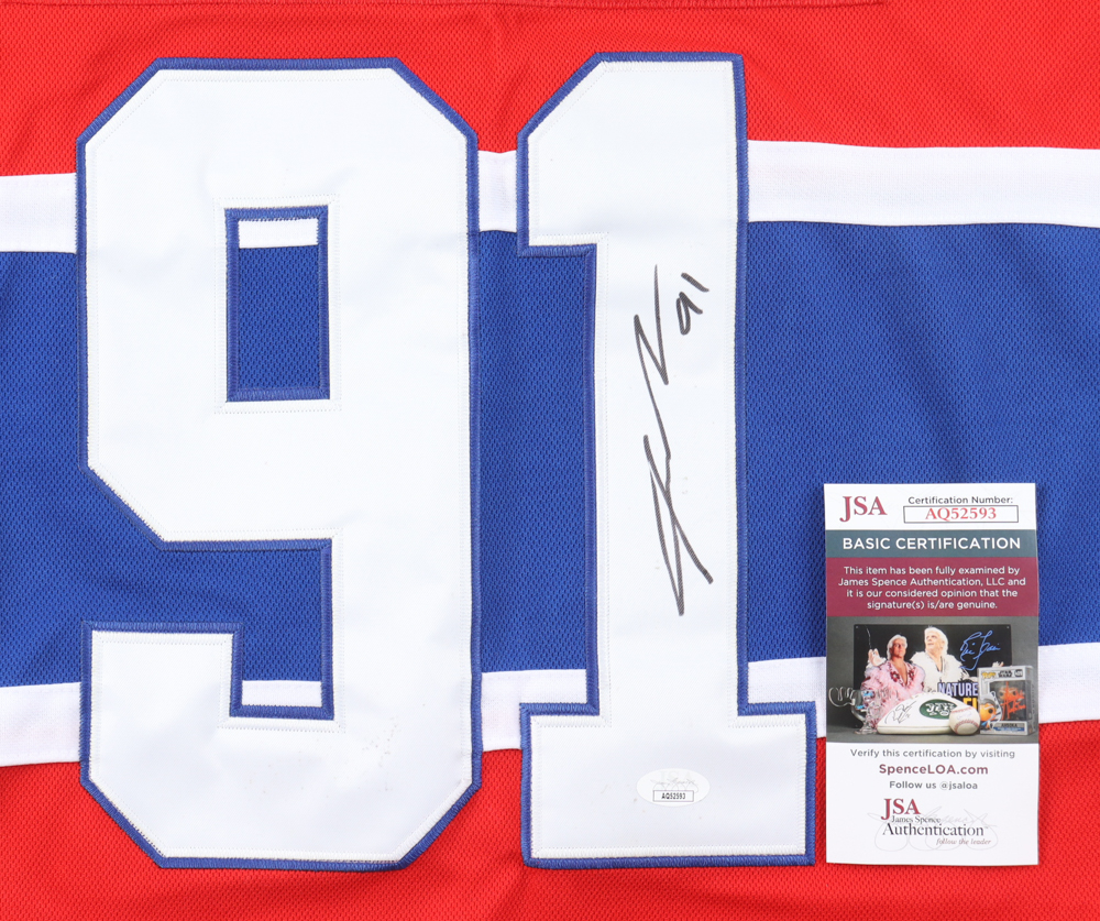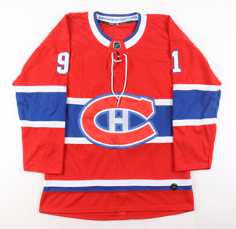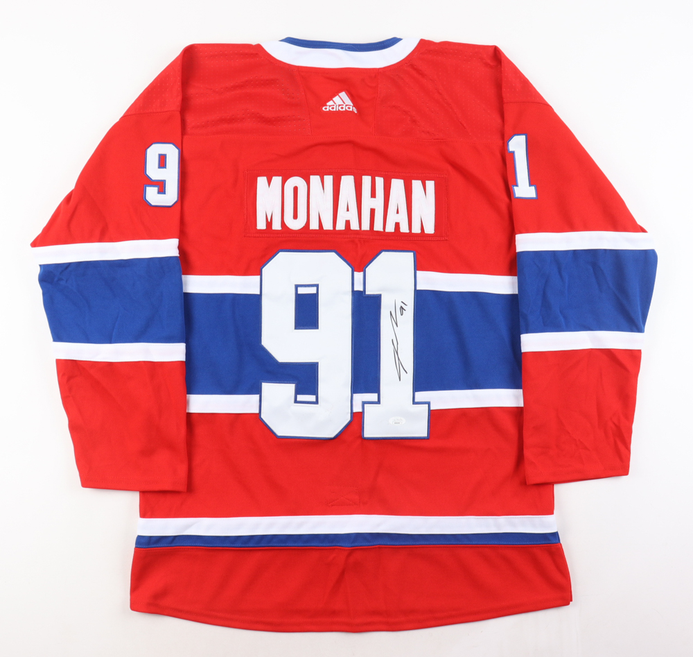 Adidas jersey with everything sewn on, size 54. Has been hand-signed Sean Monahan. Please note, there are stains on the reverse number.