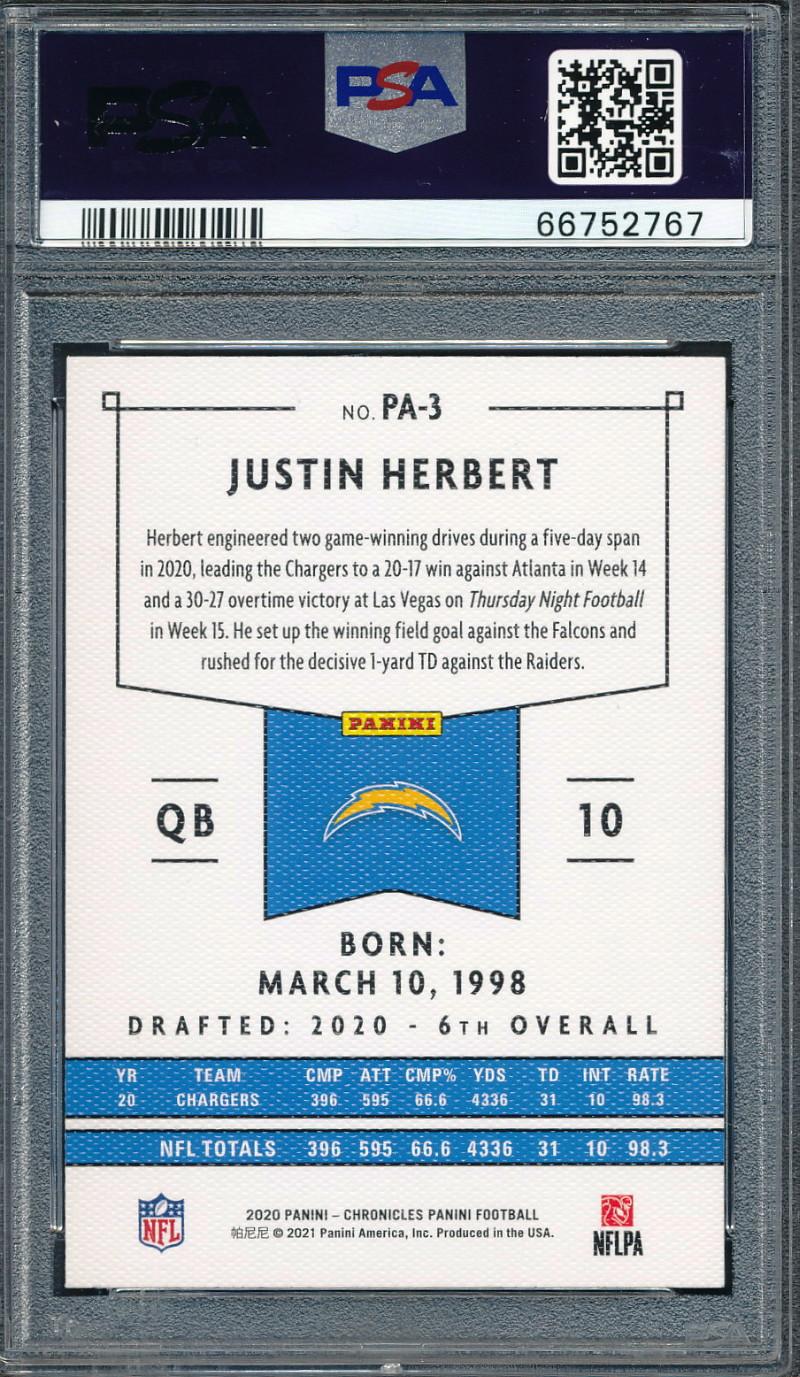 Justin Herbert 2020 Panini Pink #3 RC (PSA 10)