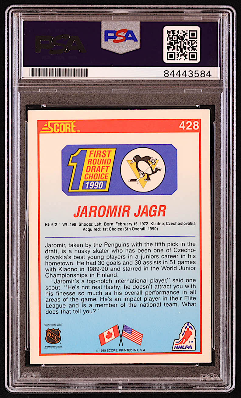 Jaromir Jagr Signed 1990-91 Score #428 RC (PSA)