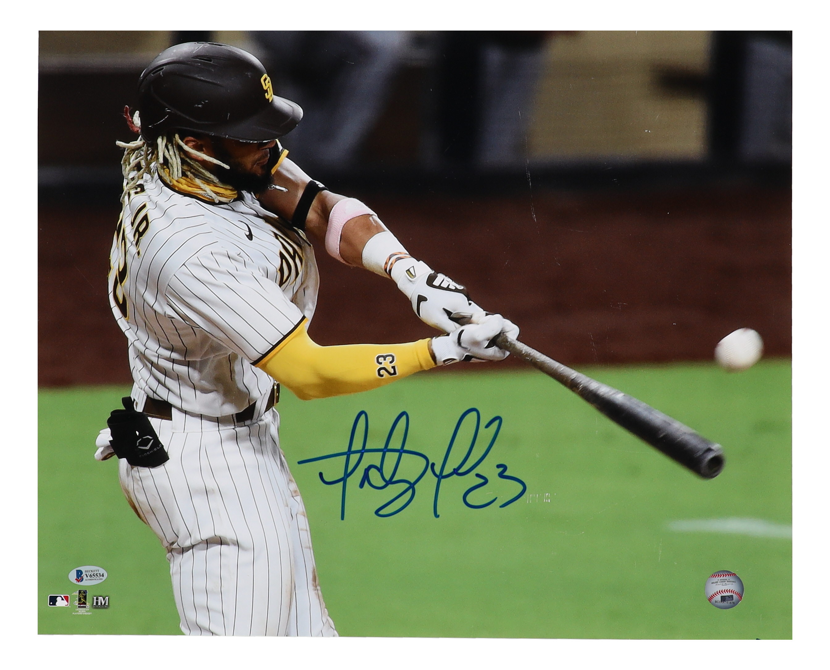 Photo measures 16" x 20" in size and has been hand-signed by Fernando Tatis Jr. (San Diego Padres). Please note, the signature has bled and scuffing by the signature.