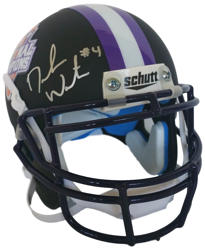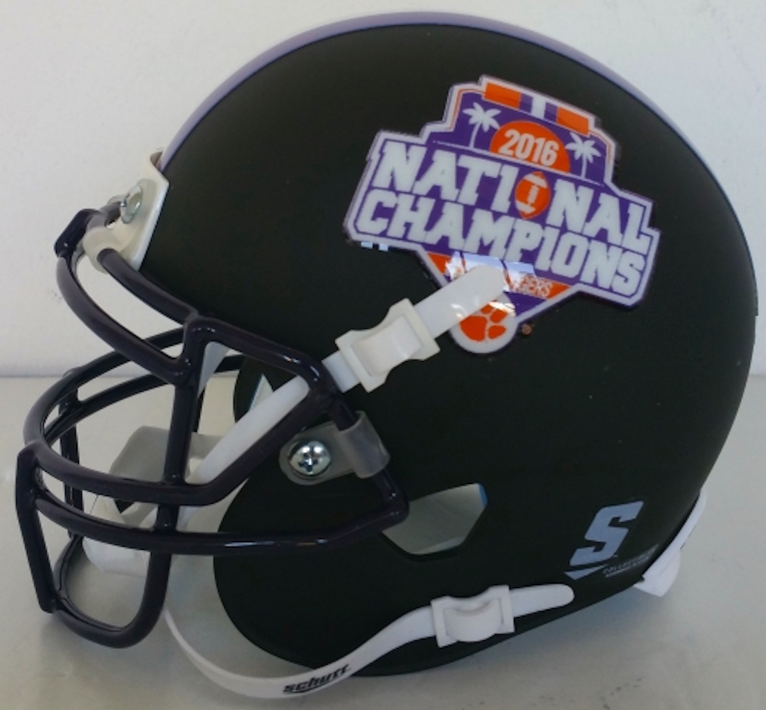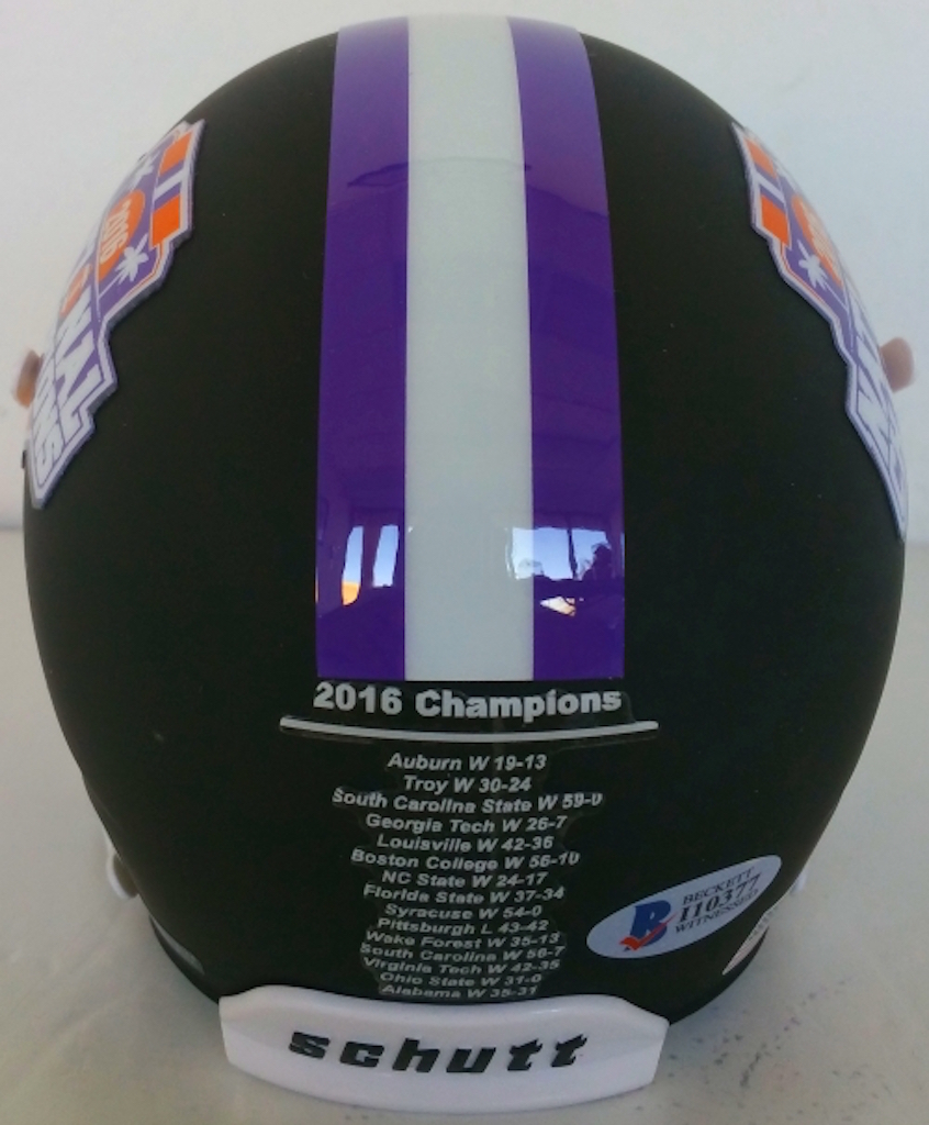 Clemson Tigers 2016 National Champions mini-helmet has been hand-signed in silver paint pen by Deshaun Watson.