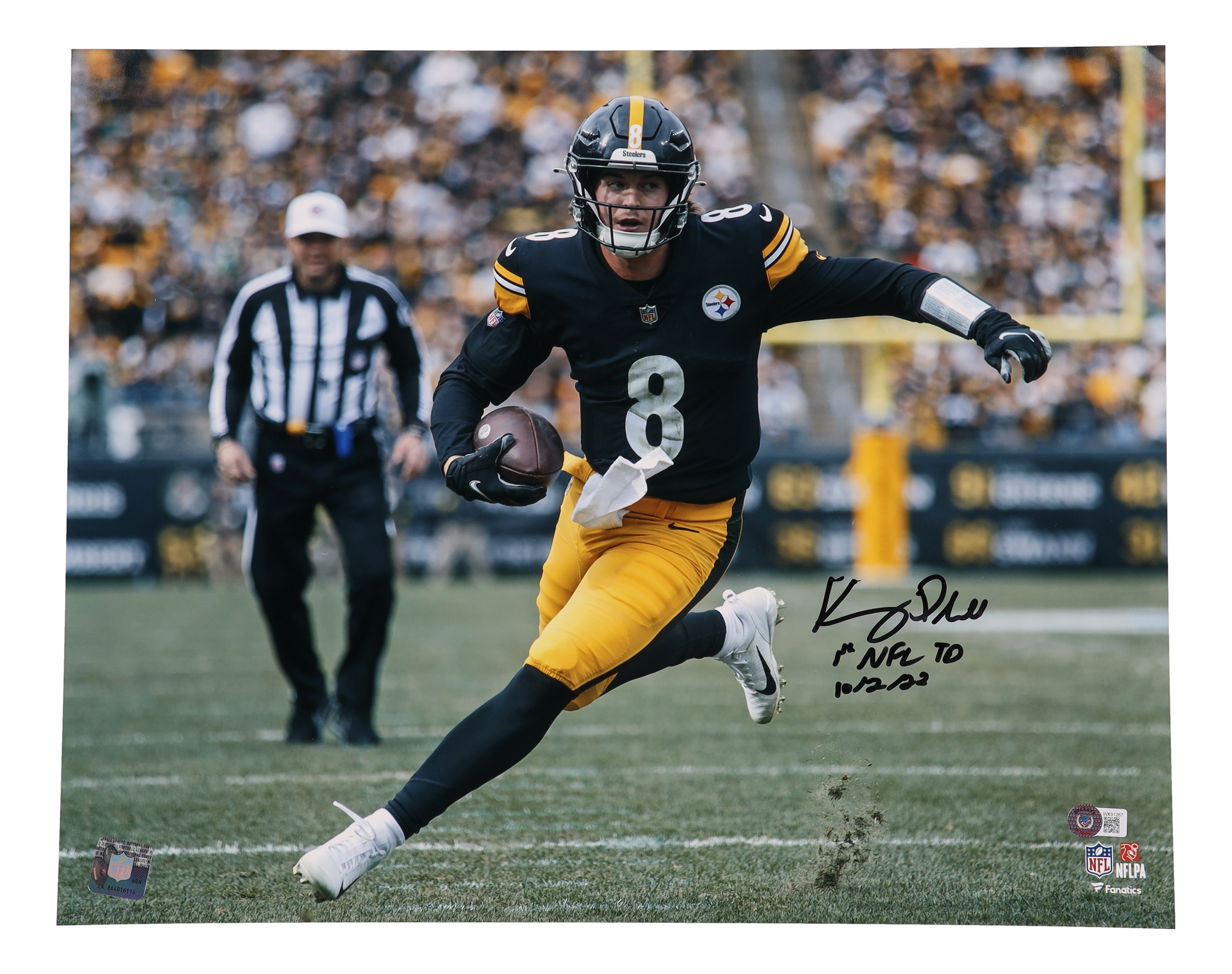 Photo measures16" x 20" in size. Hand-signed and inscribed by Kenny Pickett (Pittsburgh Steelers).