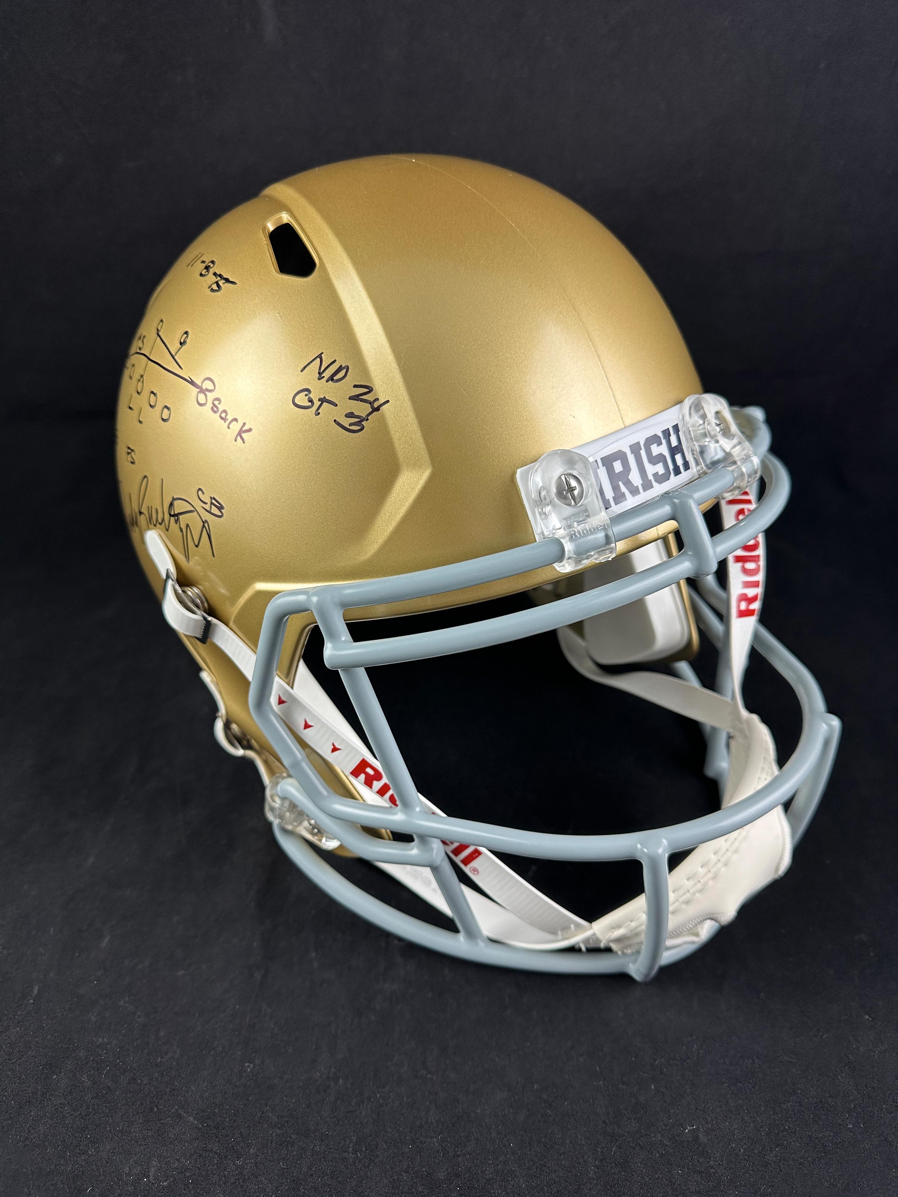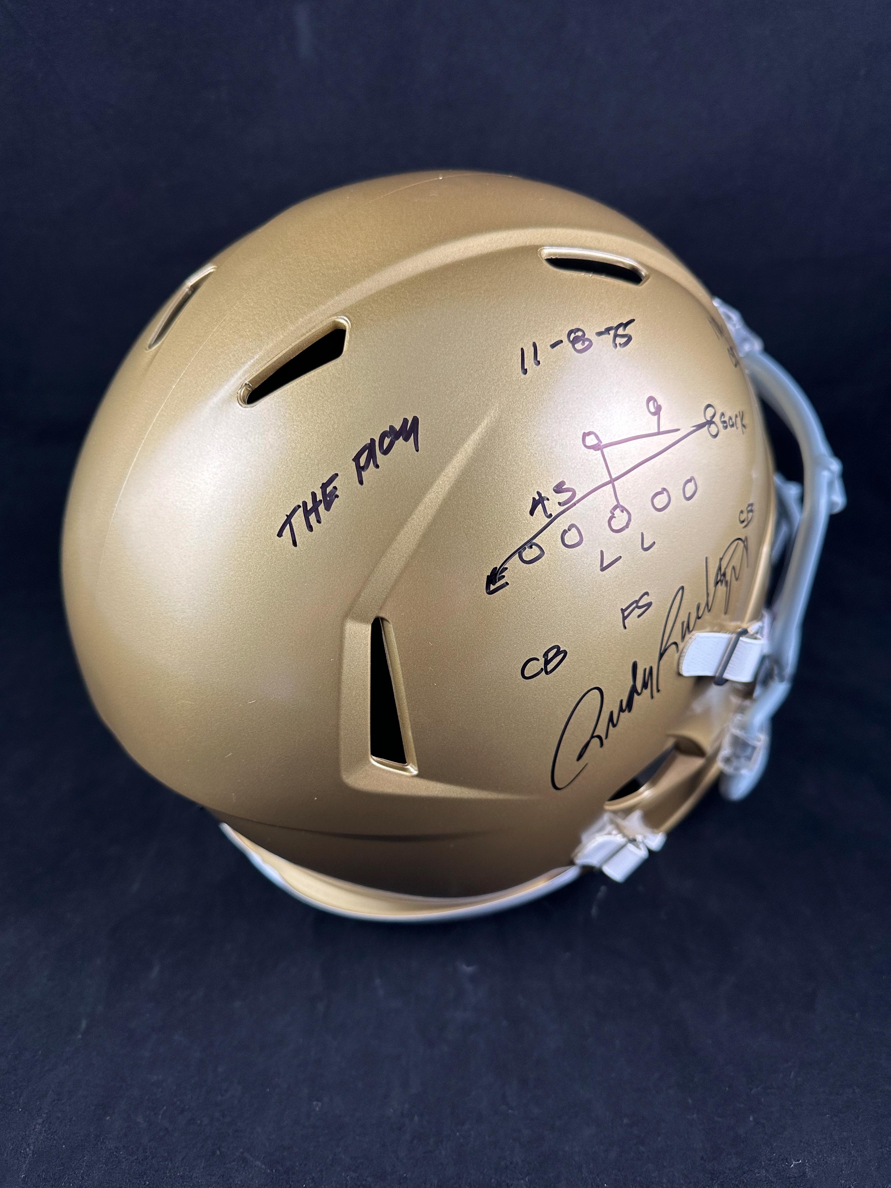 Riddell Notre Dame Fighting Irish full-size replica Speed helmet. Hand-signed by Rudy Ruettiger.