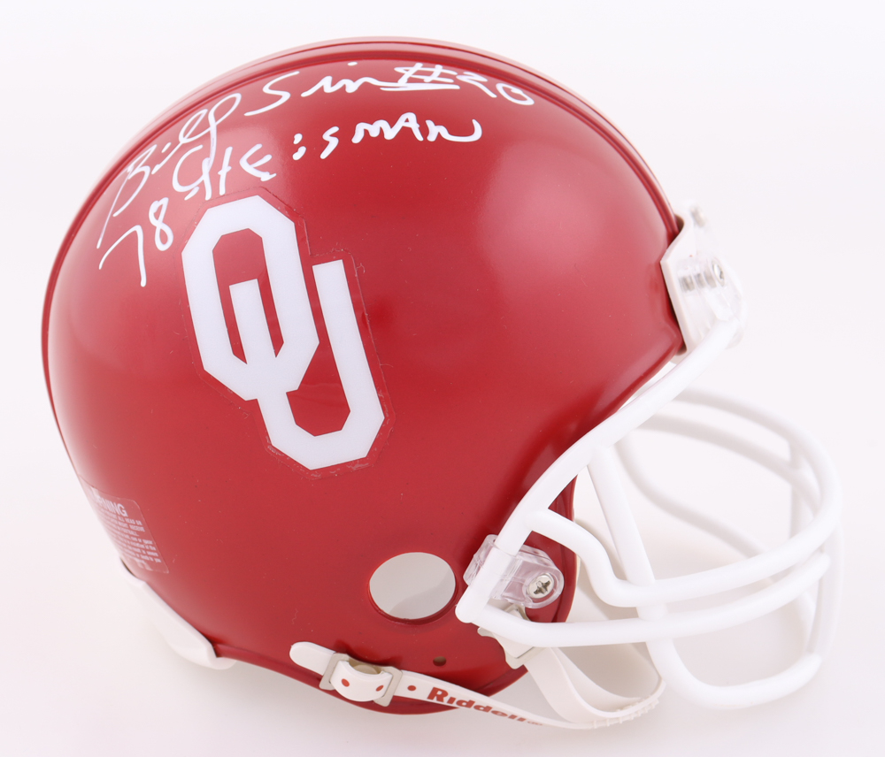 Riddell Oklahoma Sooners mini helmet. Hand-signed and inscribed by Billy Sims.