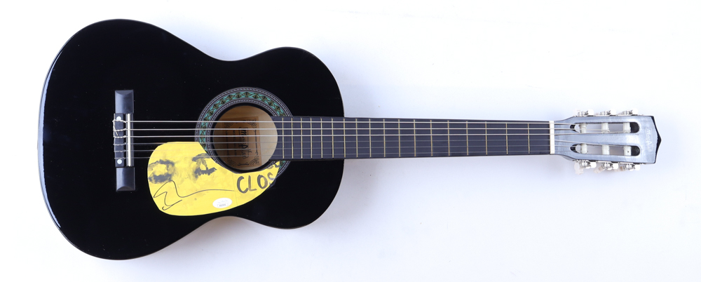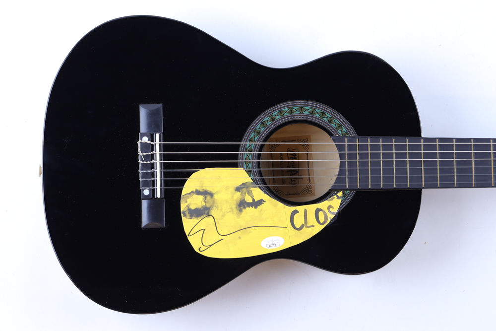 Music Alley Guitar measures approximately 34" in length. Hand-signed on a CD cover that has been repurposed as a pick-guard by Ed Sheeran.