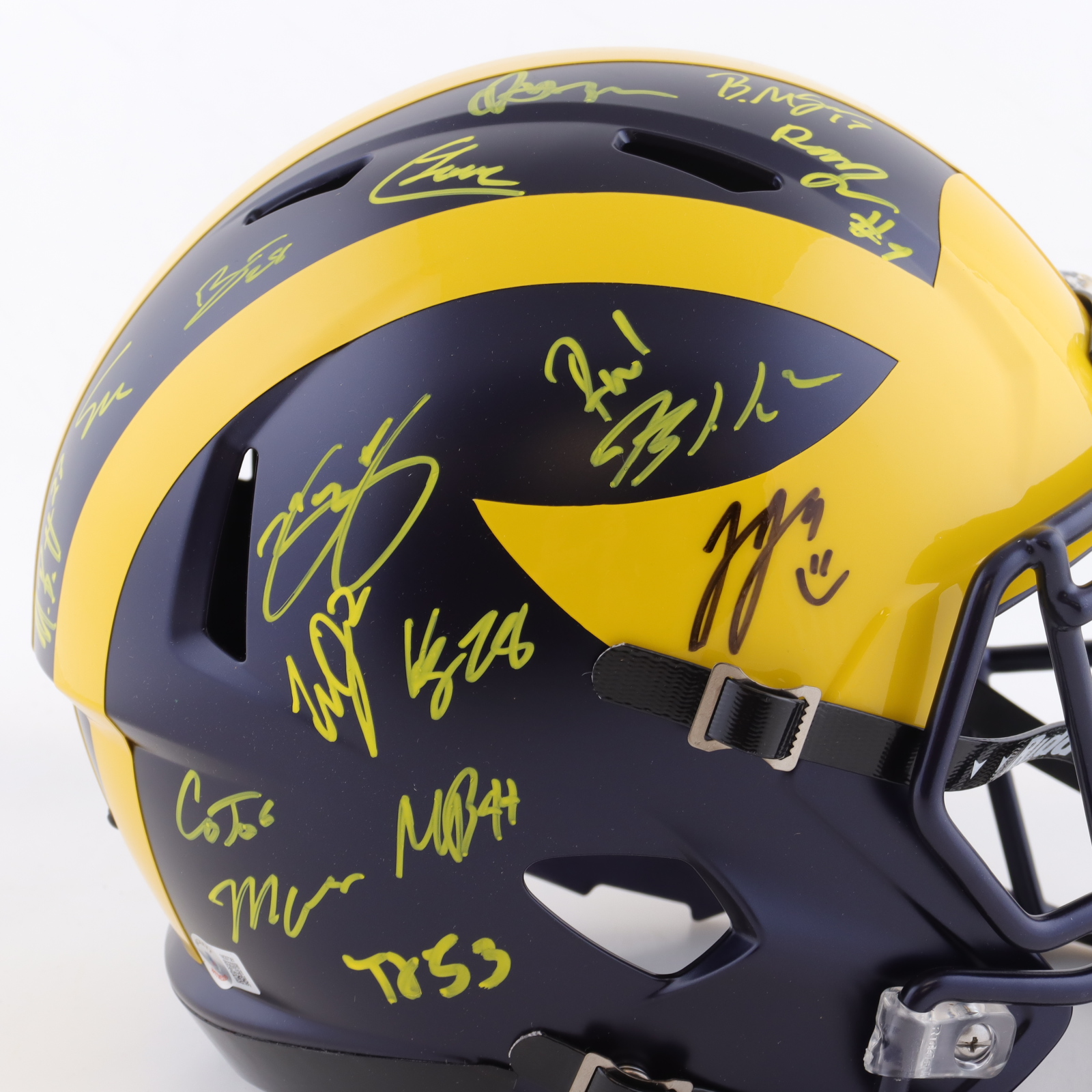 2023 Michigan Wolverines Full-Size Speed Helmet Team-Signed by (19) with J.J. McCarthy, Blake Corum, Roman Wilson, Colston Loveland (Beckett)