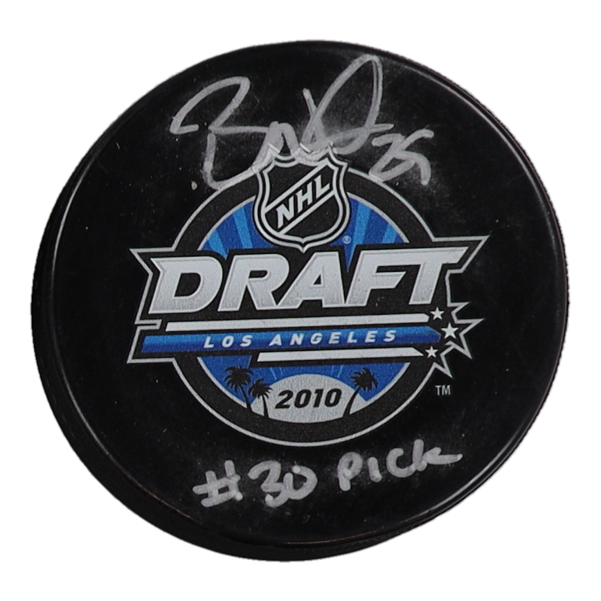 Brock Nelson Signed 2010 NHL Draft Hockey Puck Inscribed "#30 Pick" (Fanatics)