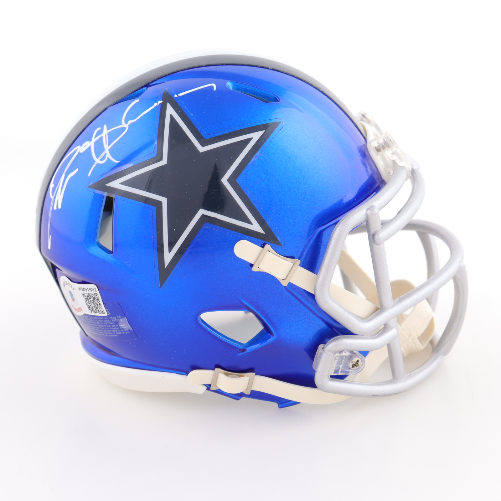 Riddell Dallas Cowboys Flash Alternate Speed mini helmet. Hand-signed by Deion Sanders (HOF).