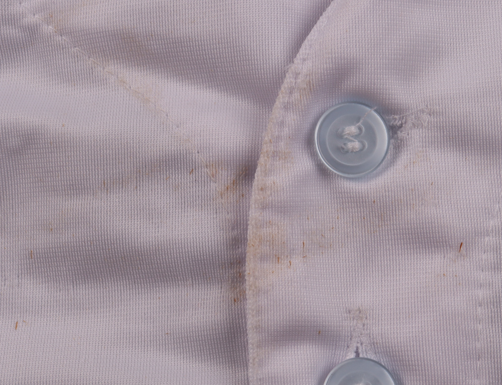 Custom jersey with everything sewn on, size XL. Hand-signed and inscribed by Derrek Lee. Please note, the front of the jersey is damaged. Please see photos regarding the condition of the jersey.