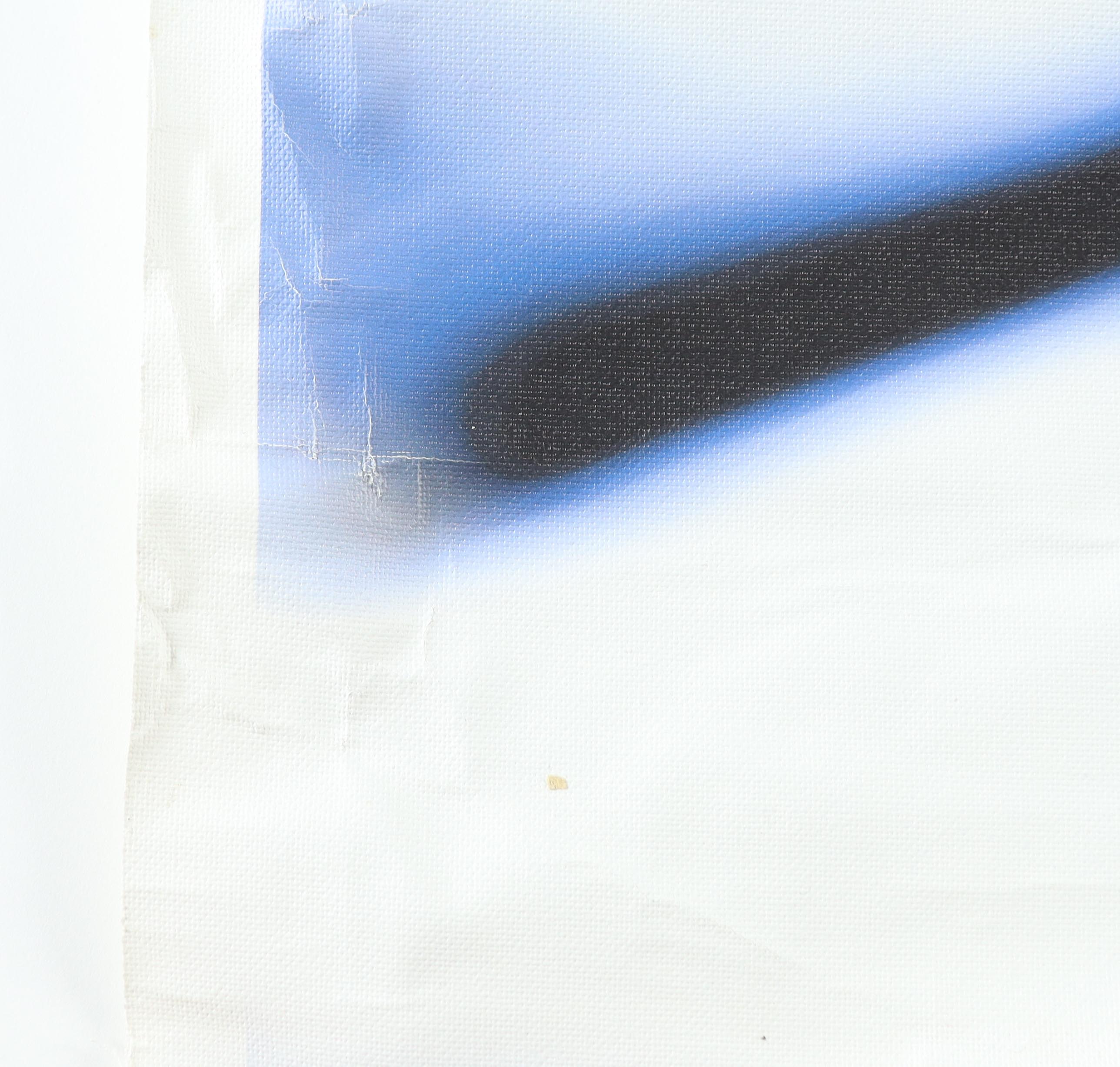 Please note, the canvas shows creasing and the fabric is strained toward the lower-left.