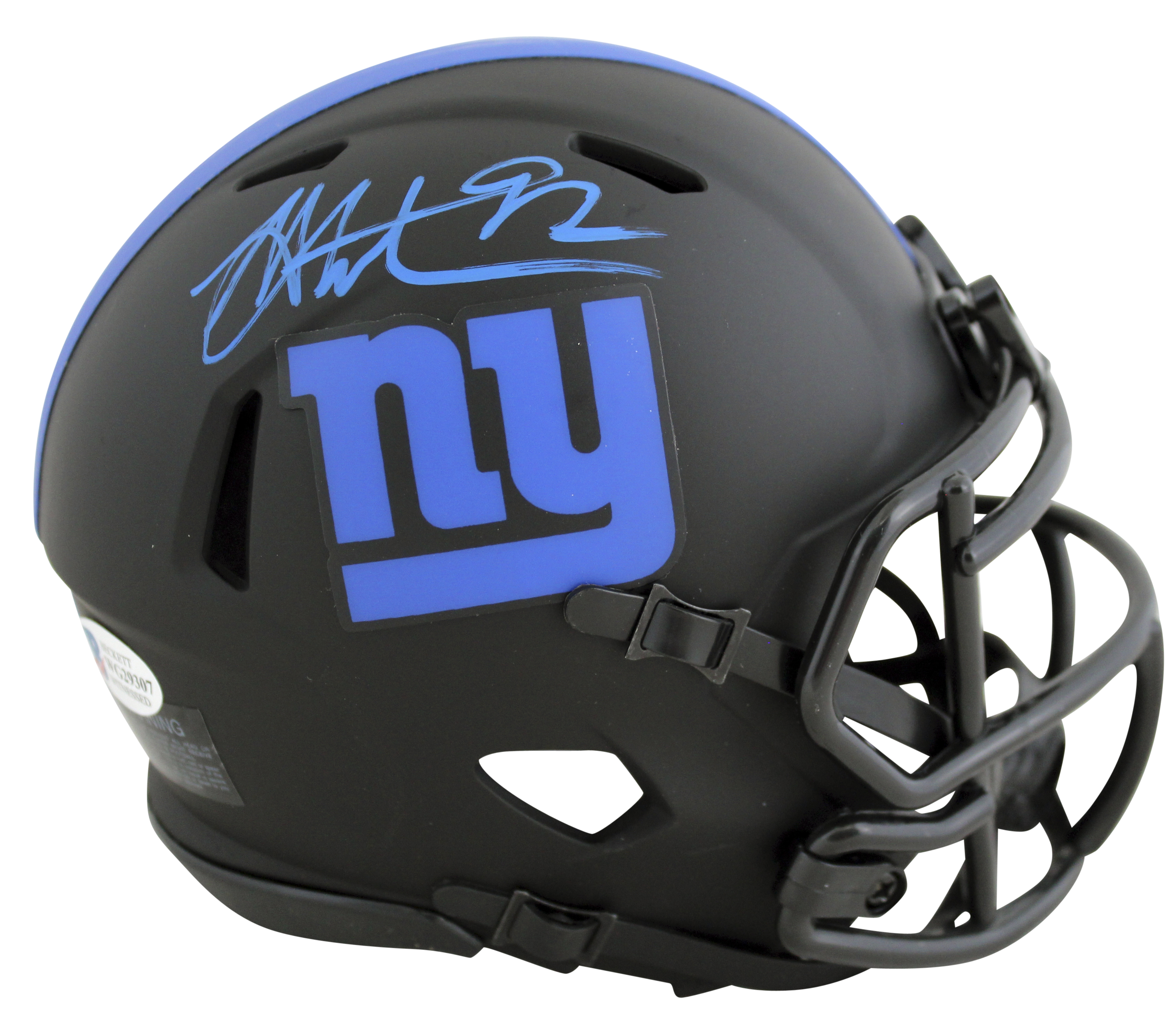 Riddell New York Giants Eclipse Alternate Speed mini-helmet. Hand-signed by Michael Strahan (HOF).
