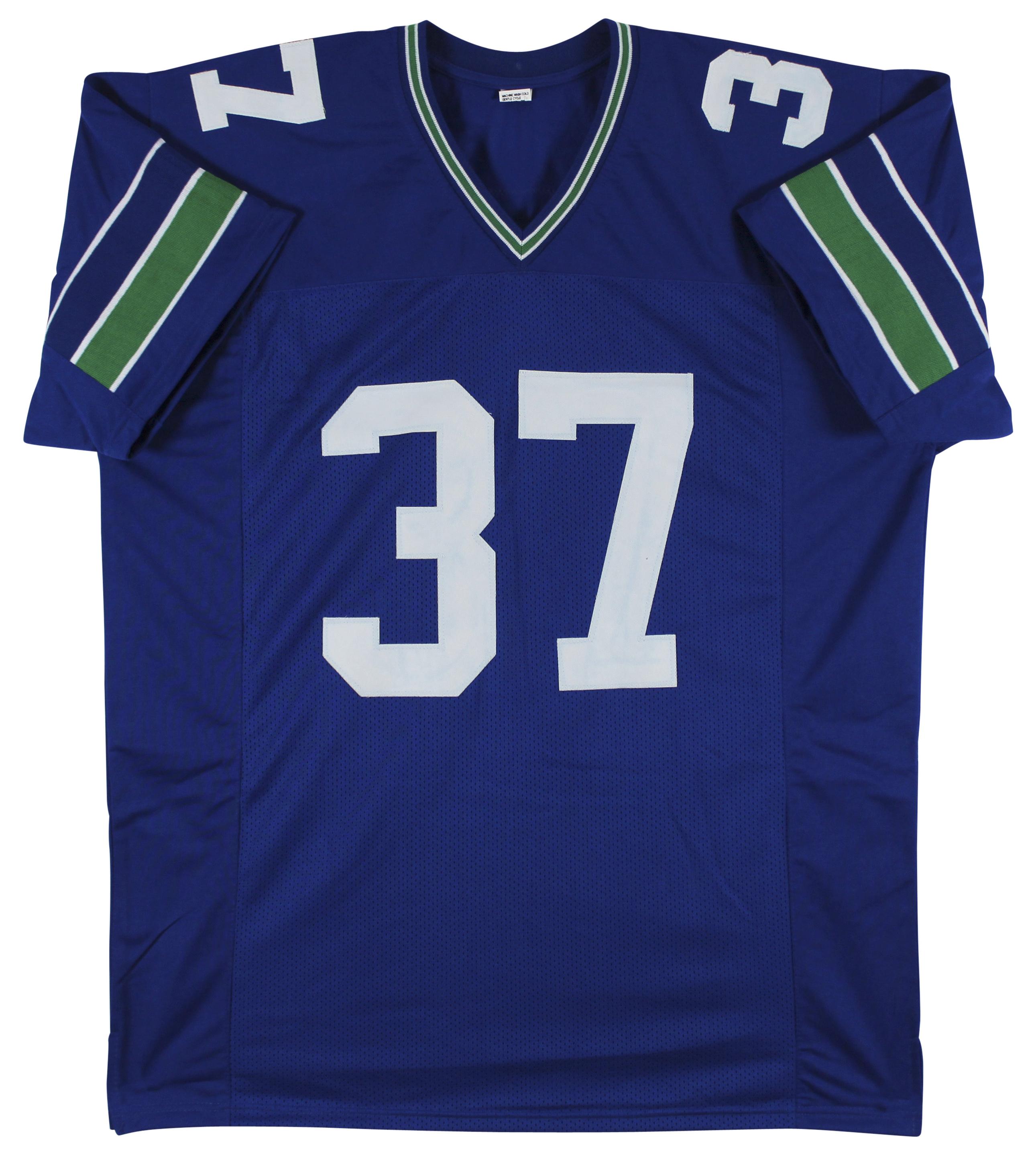 Custom jersey with everything sewn on, size XL. Has been hand-signed and inscribed by Shaun Alexander. Please note, the signature and inscription has bled.