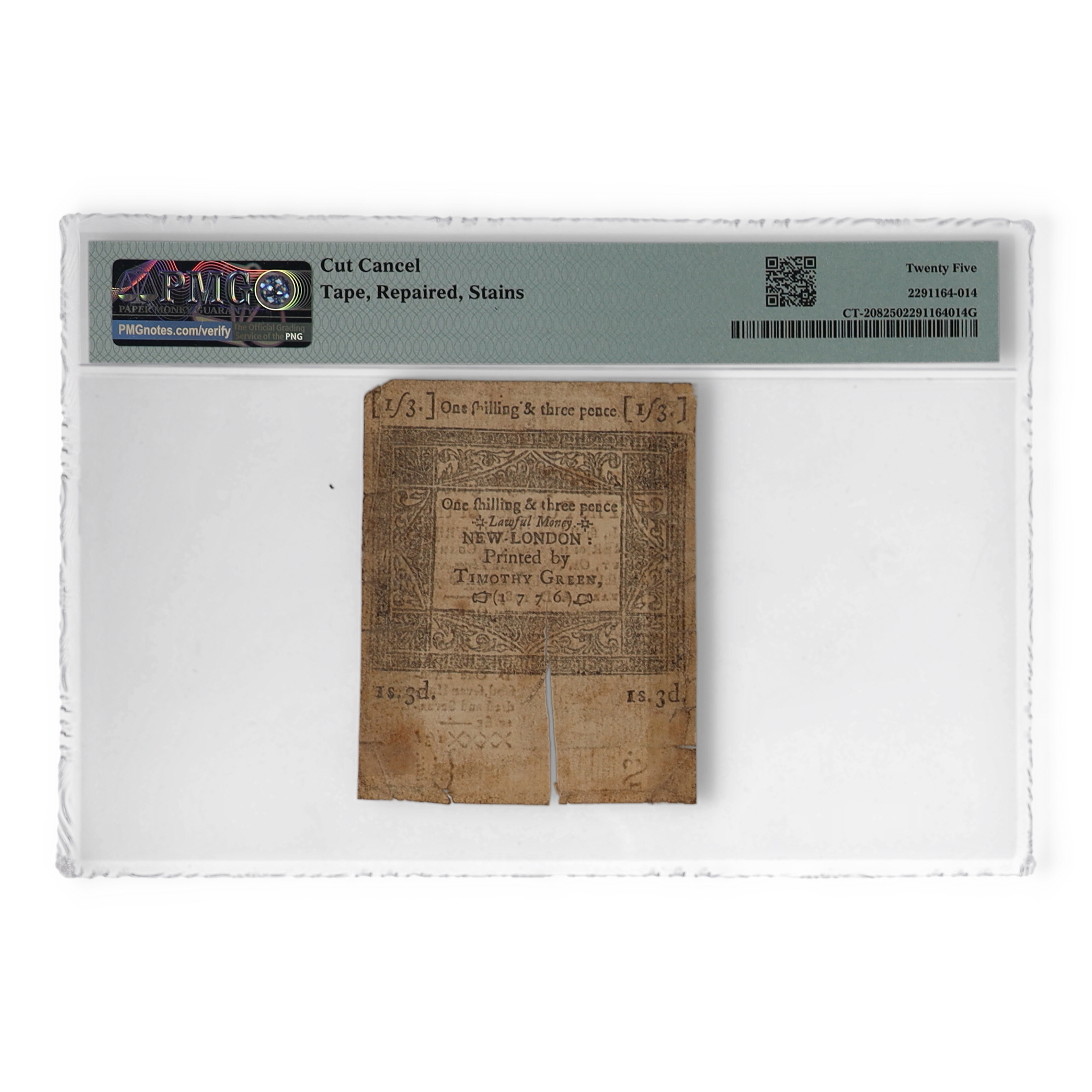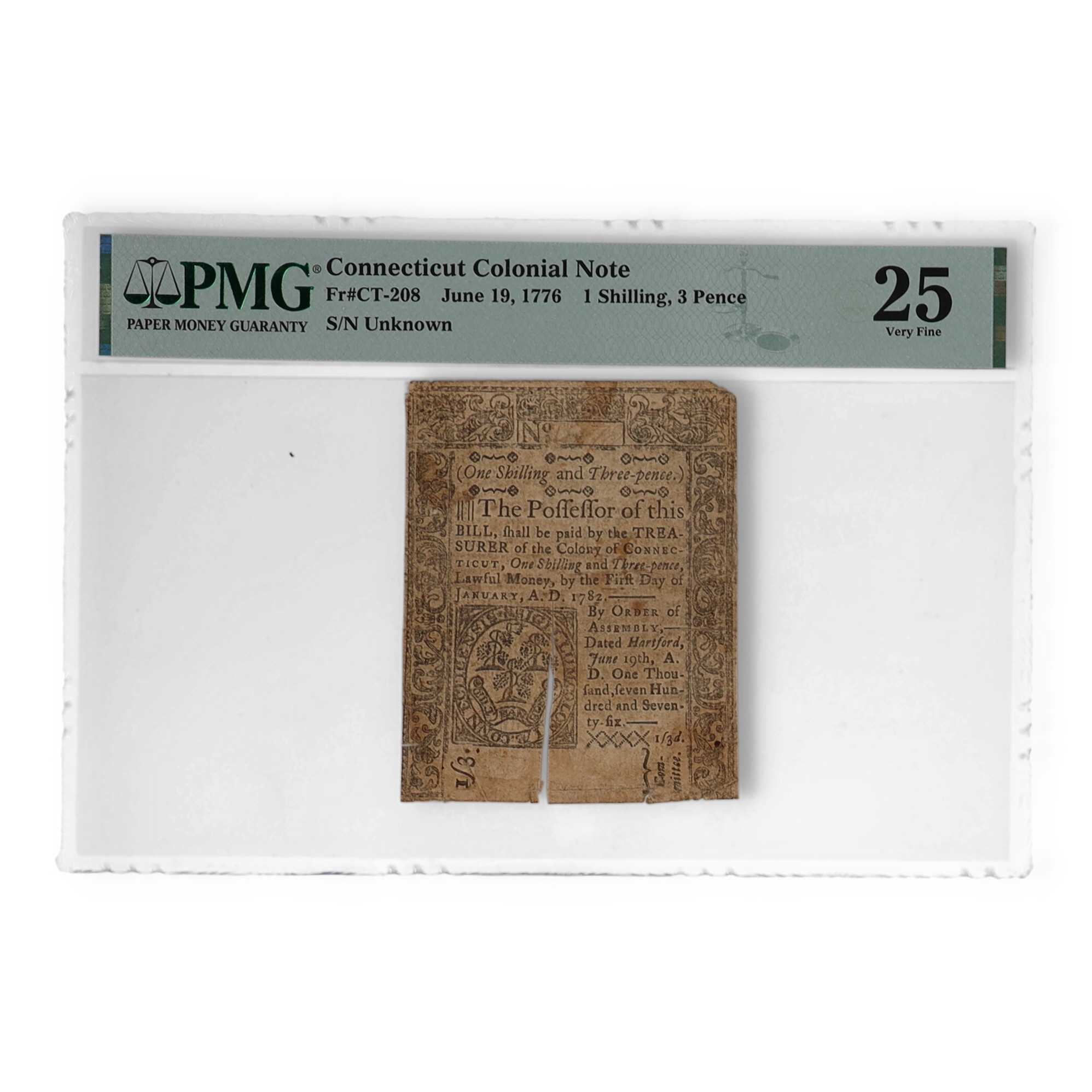 1776 Connecticut Colonial Note - 1 Shilling, 3 Pence (PMG VF25)