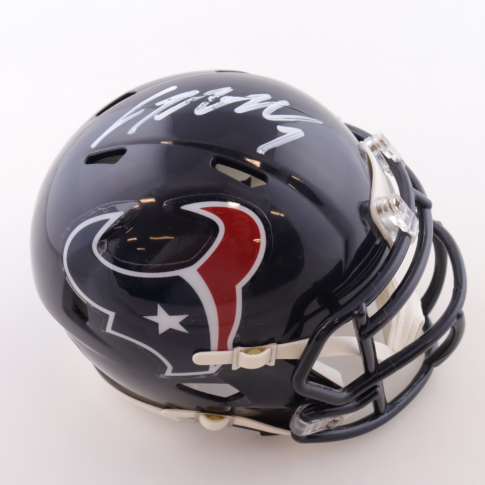 Riddell Houston Texans Speed Mini Helmet. Hand-signed by C. J. Stroud. Please note, the signature is imperfect.