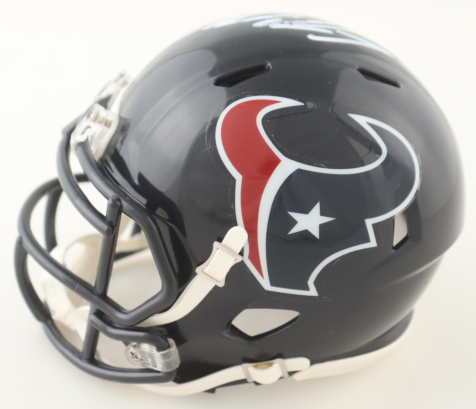 Riddell Houston Texans Speed Mini Helmet. Hand-signed by C. J. Stroud. Please note the signature is imperfect.