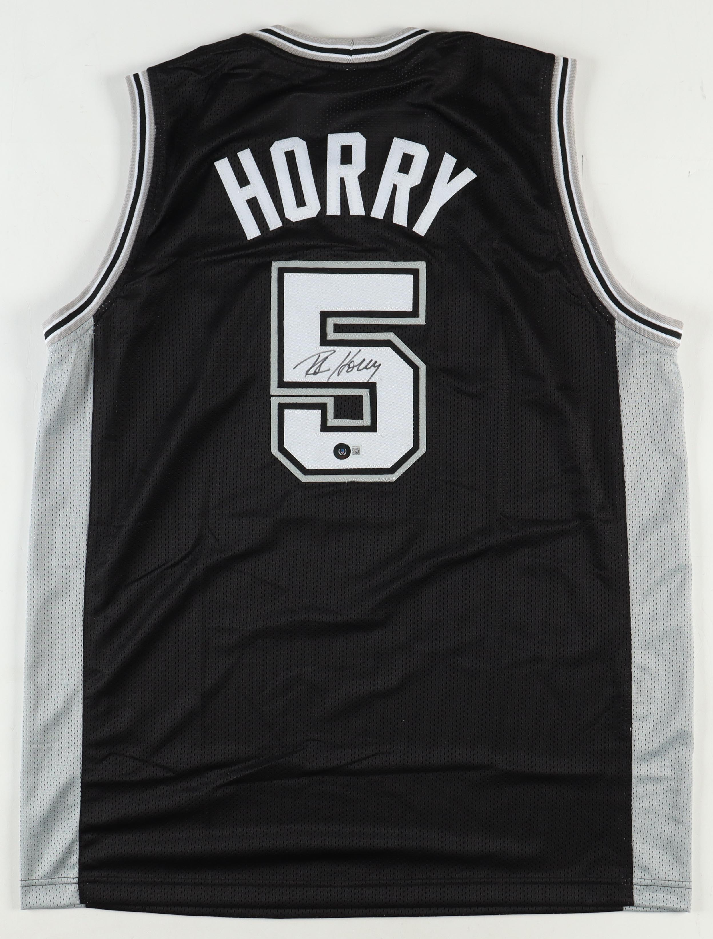 Custom jersey with everything sewn on, size XL. Hand-signed by Robert Horry.