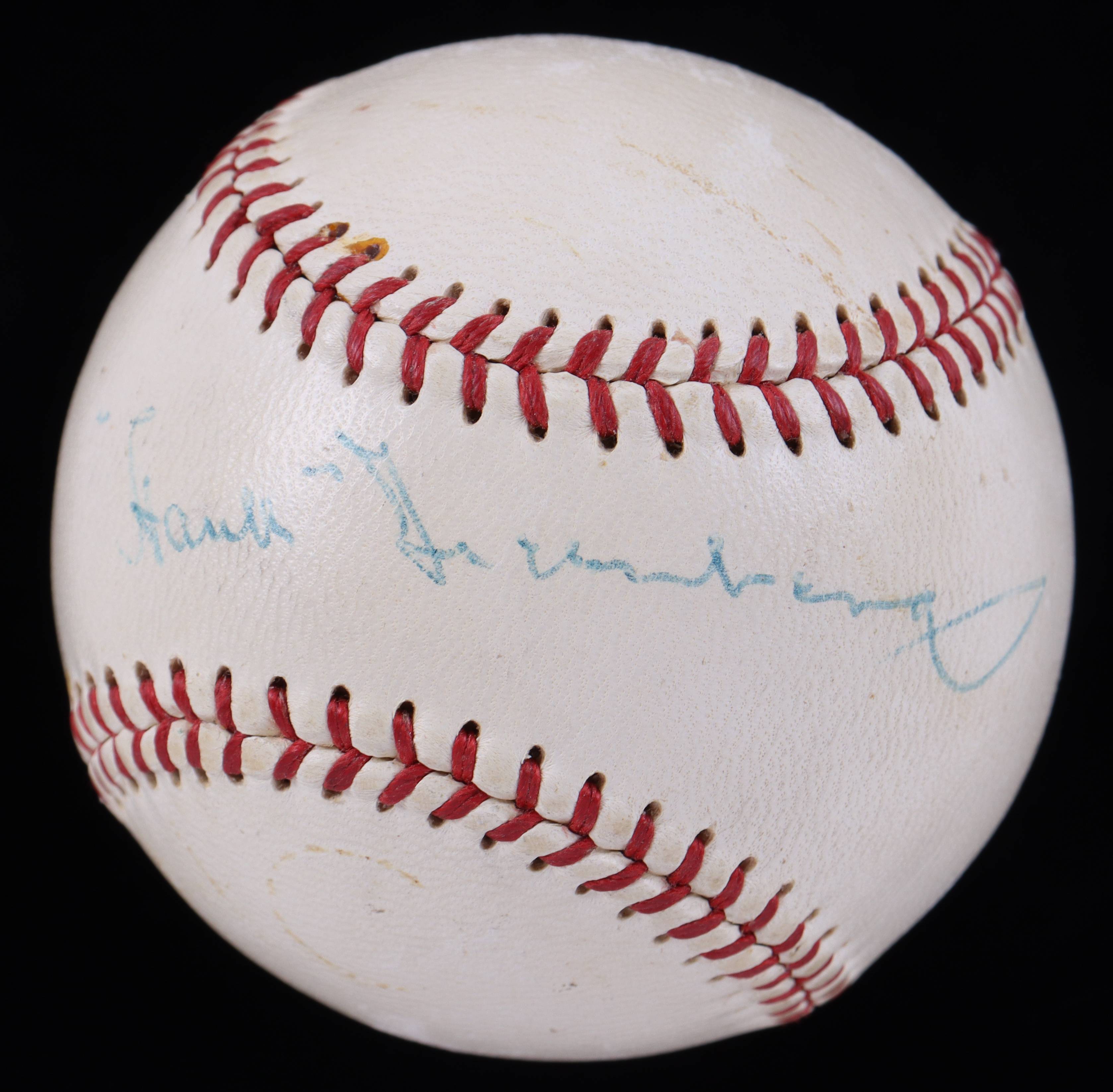 Rawlings Official American League baseball. Hand-signed on the sweet spot by Hank Greenberg (D. 1986, Detroit Tigers, HOF).