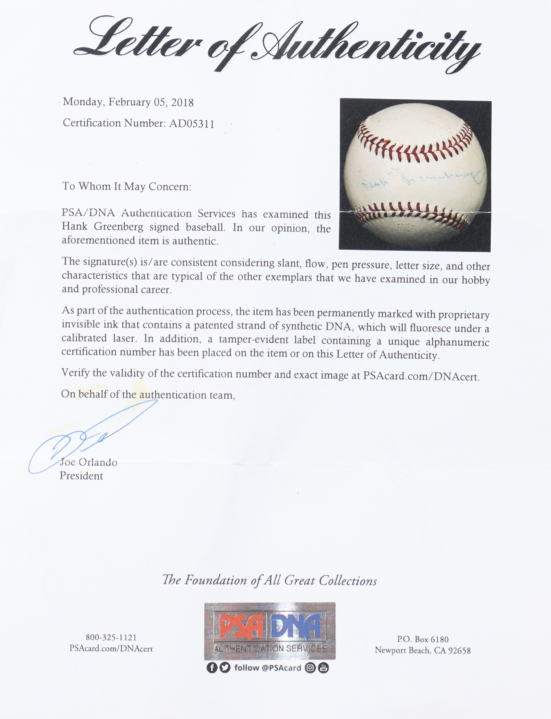 The autograph includes an official PSA/DNA hologram and matching LOA for authenticity purposes.